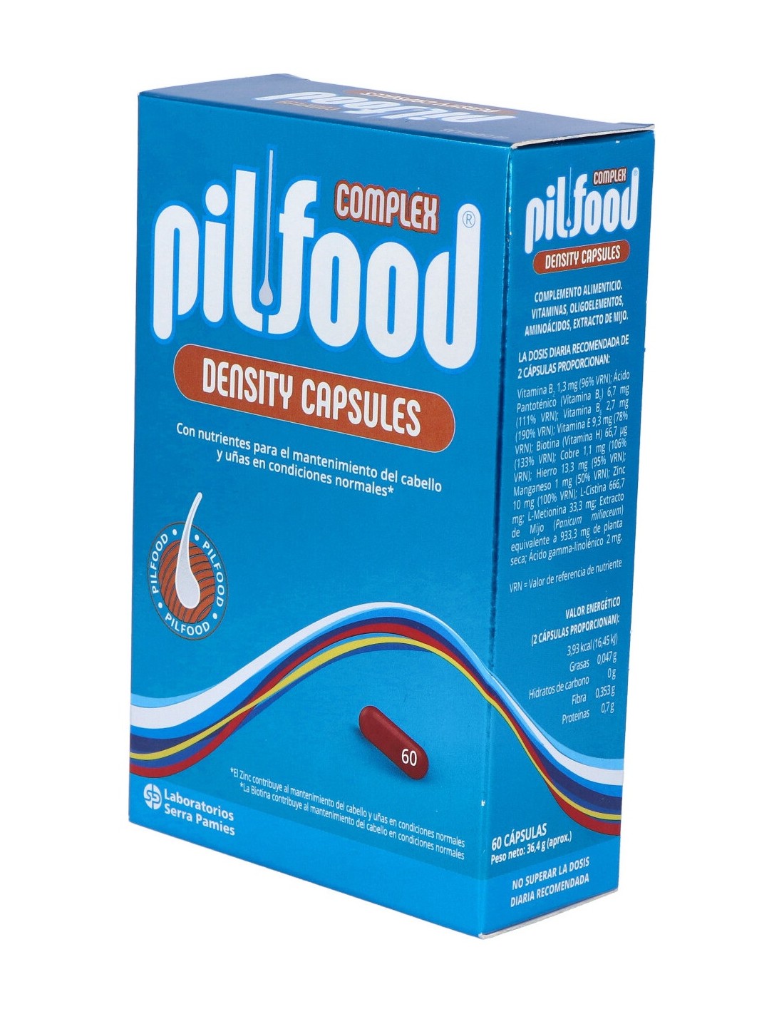 PilFood Complex es un complemento alimenticio que ofrece una serie de nutrientes que consiguen potenciar la vitalidad y fuerza de tu pelo, recuperando la salud capilar y retrasando su caída. Gracias a su composición con aminoácidos, oligoelementos minerales y vitaminas, tu cabello estará reforzado, y su mantenimiento asegurado además estimula el crecimiento de este. Su aplicación es muy sencilla gracias a sus cápsulas de fácil disolución.