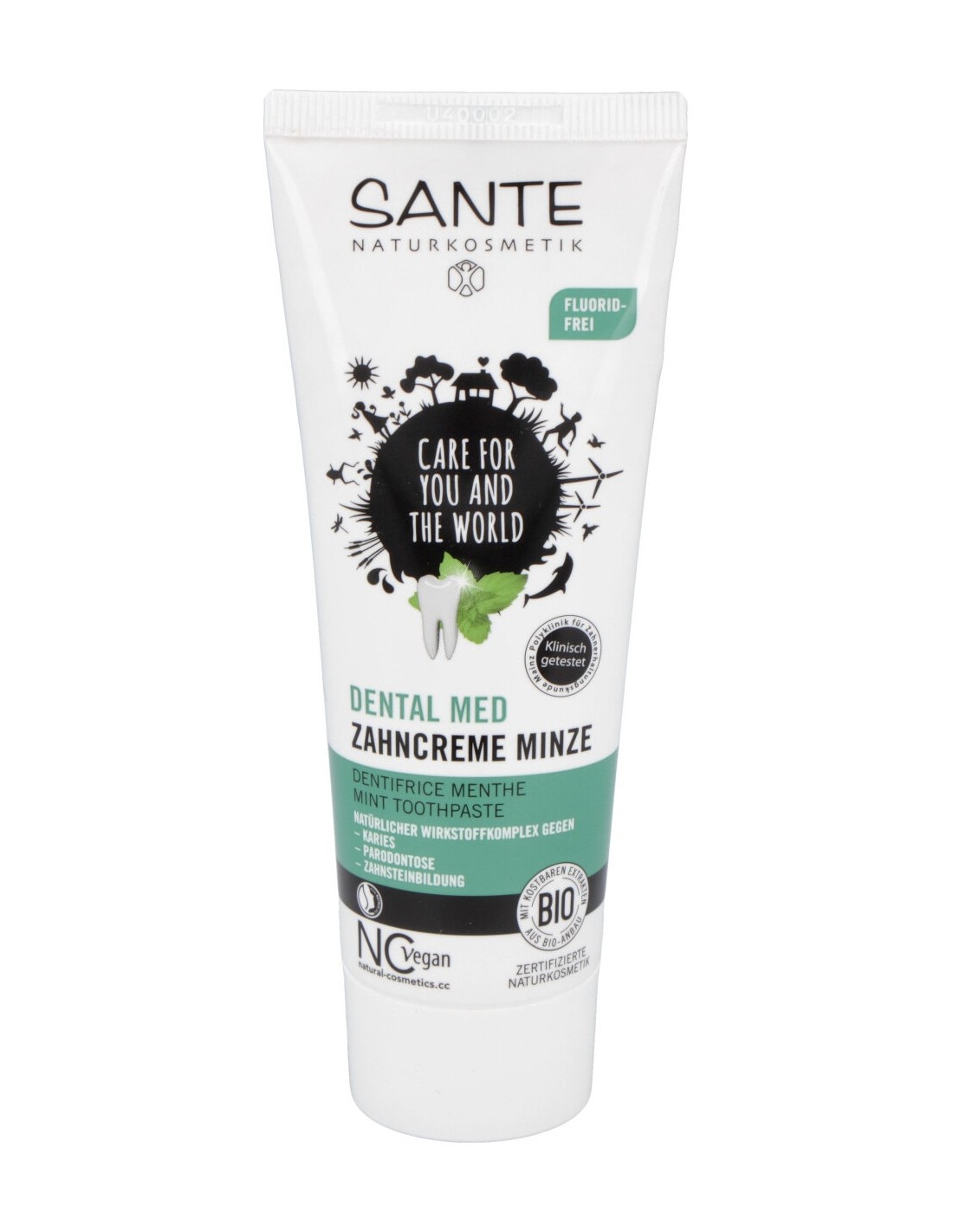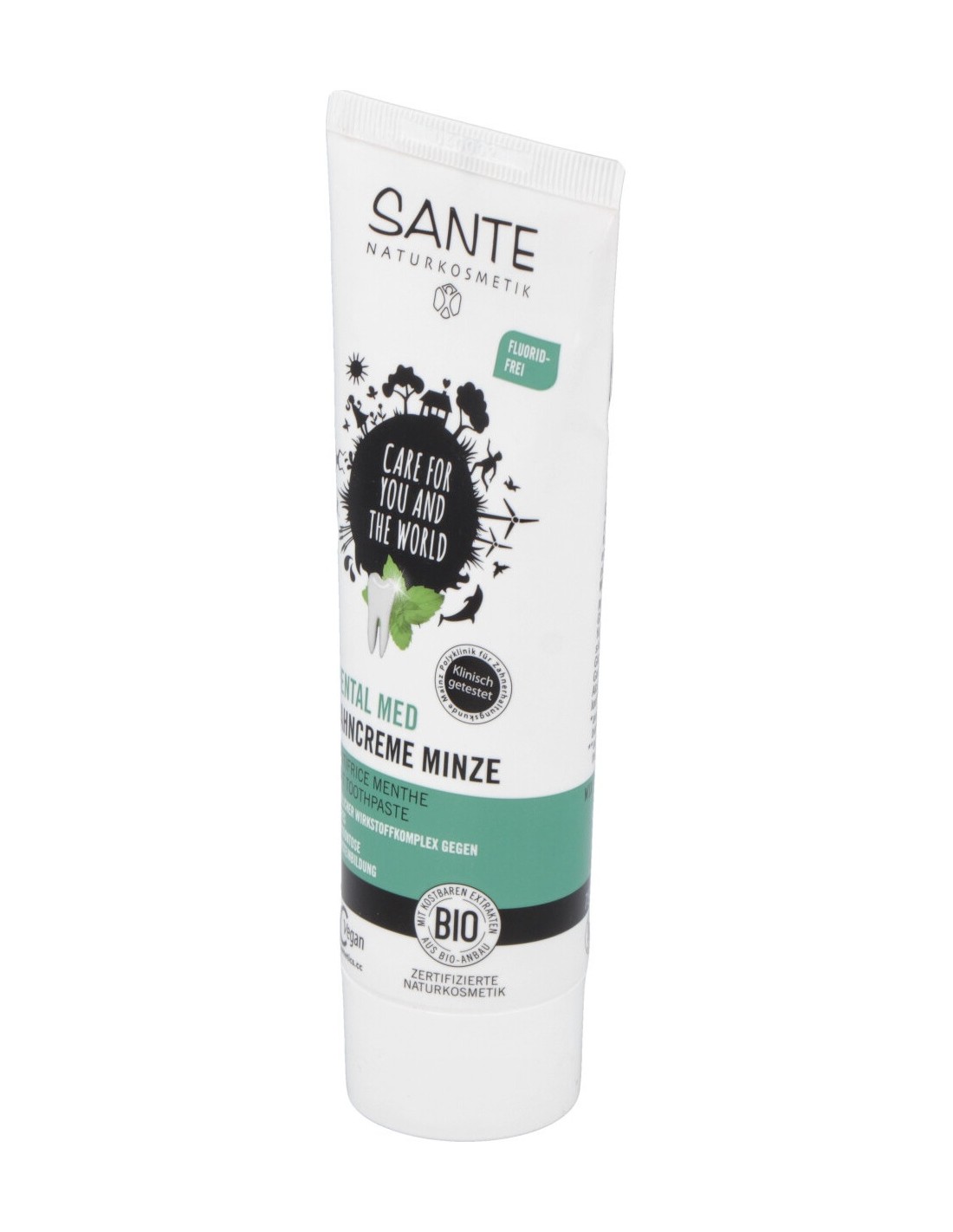 Para higiene bucodental y aliento fresco con aceite de menta. Este dentífrico de menta sin flúor cuida y protege los dientes y encías con un complejo de principios activos a base de menta salvia y mirra. De agradable y refrescante sabor. Sin gluten. Apto para veganos. Cosmético ecológico certificado con los sellos BDIH y NaTrue.