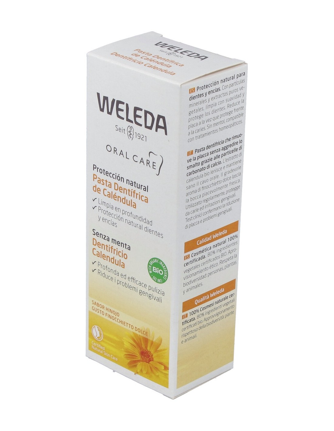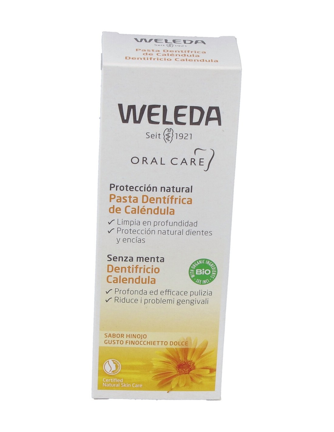 Dentífrico sin mentol para personas que quieren evitar el aceite de menta, por ejemplo durante un tratamiento HOMEOPÁTICO. El extracto de caléndula biológica, una planta medicinal de efecto calmante, ayuda a mantener sanas las encías y la cavidad bucal. El suave aceite de hinojo proporciona un aliento fresco.