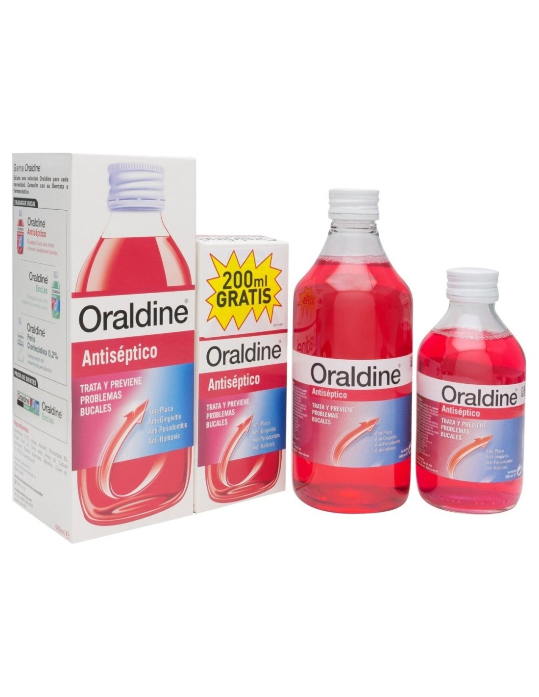 Oraldine Colutorio Antiséptico 400ml + 200ml es un enjuague bucal que ayuda a prevenir la gingivitis y eliminar bacterias y gérmenes, además de evitar las afecciones bucales como el sangrado de encías o las caries.