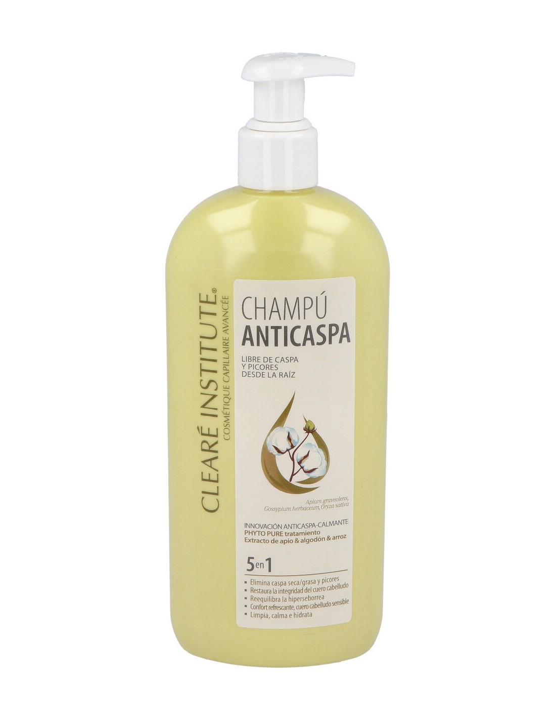 Línea de tratamiento anticaspa con Phyto Pure que combina la acción anticaspa y antipicores total junto con la acción calmante y protectora.CHAMPU ANTICASPA 400ml. de CLEARE INSTITUTE