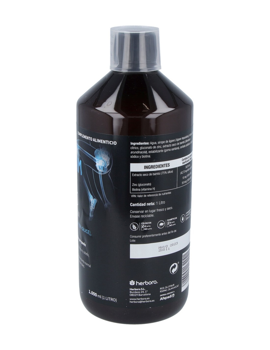 Extracto seco de bambú (Bambusa arundinacea) (75% sílice) 56,96 mg (42,72 mg de silicio orgánico): Zinc (gluconato) 10 mg : Biotina (vitamina H) 50 mcg