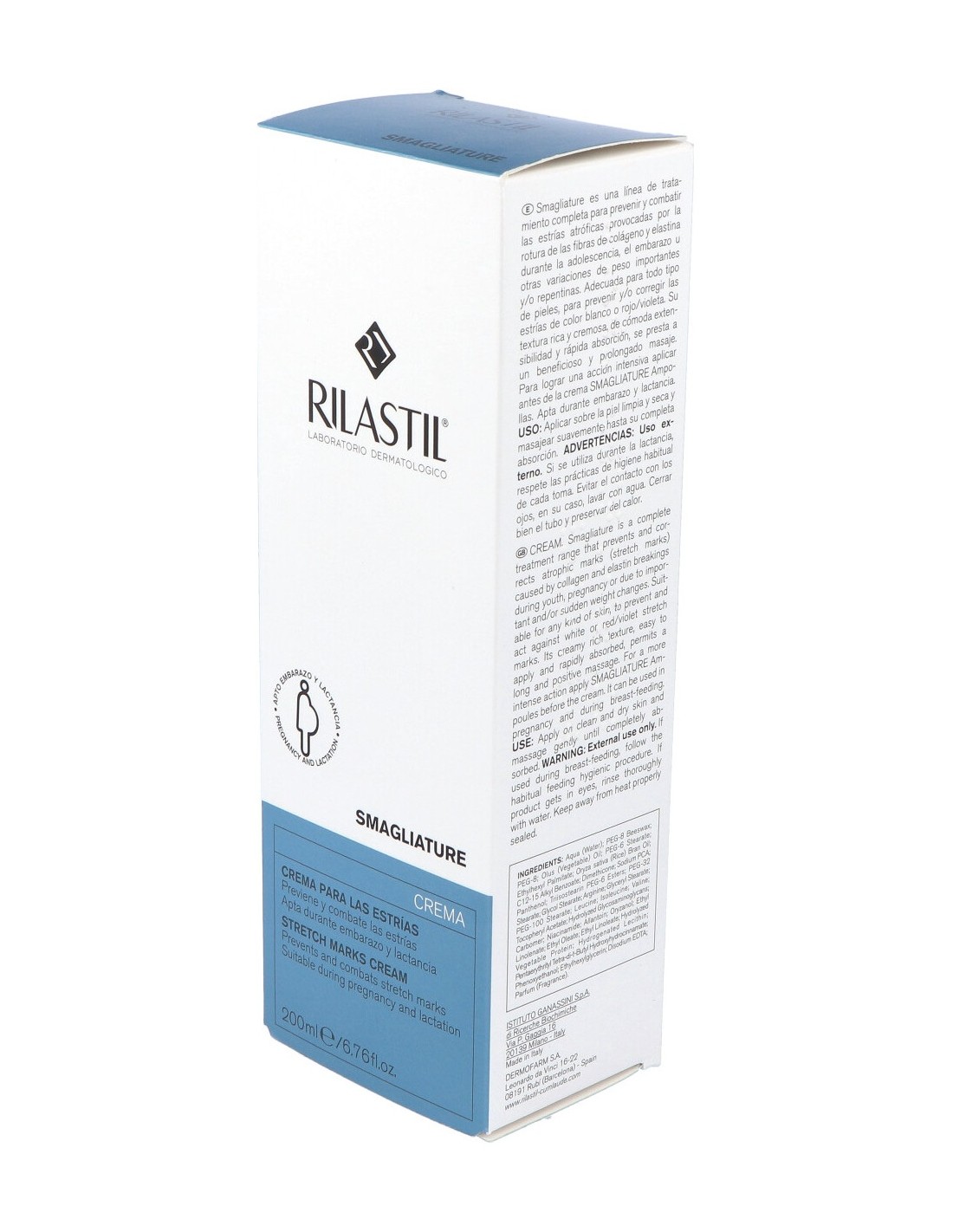 Tratamiento antiestrías en crema nº1 en Italia desde hace más de 40 años. Proporciona una intensa elasticidad a los tejidos y repara las fibras elásticas dañadas, previniendo y corrigiendo de forma eficaz las estrías. Su excelente galénica proporciona una cómoda extensibilidad, una rápida absorción y un agradable aroma. Apto durante embarazo y lactancia. Dermatológicamente testado.RILASTIL SMAGLIATURE crema antiestrias 20ml. de RILASTIL - CUMLAUDE