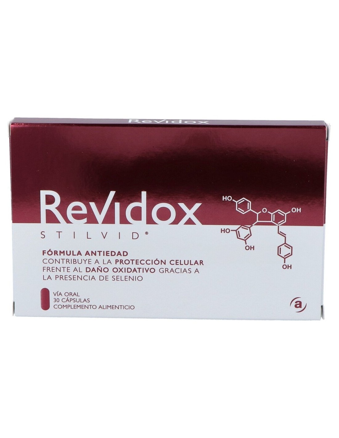 Revidox 30Cáps es un nutricosmético compuesto por un concentrado de activos que ayudan a prevenir el envejecimiento celular. Elaborado con extracto de uva (con polifenoles y antocianinas), resveratrol (polifenol natural con propiedades antioxidantes), extracto de granada (con punicalaginas y punicalinas) y selenio (mineral esencial que protege del daño oxidativo), ayuda a proteger y mejorar la salud celular.