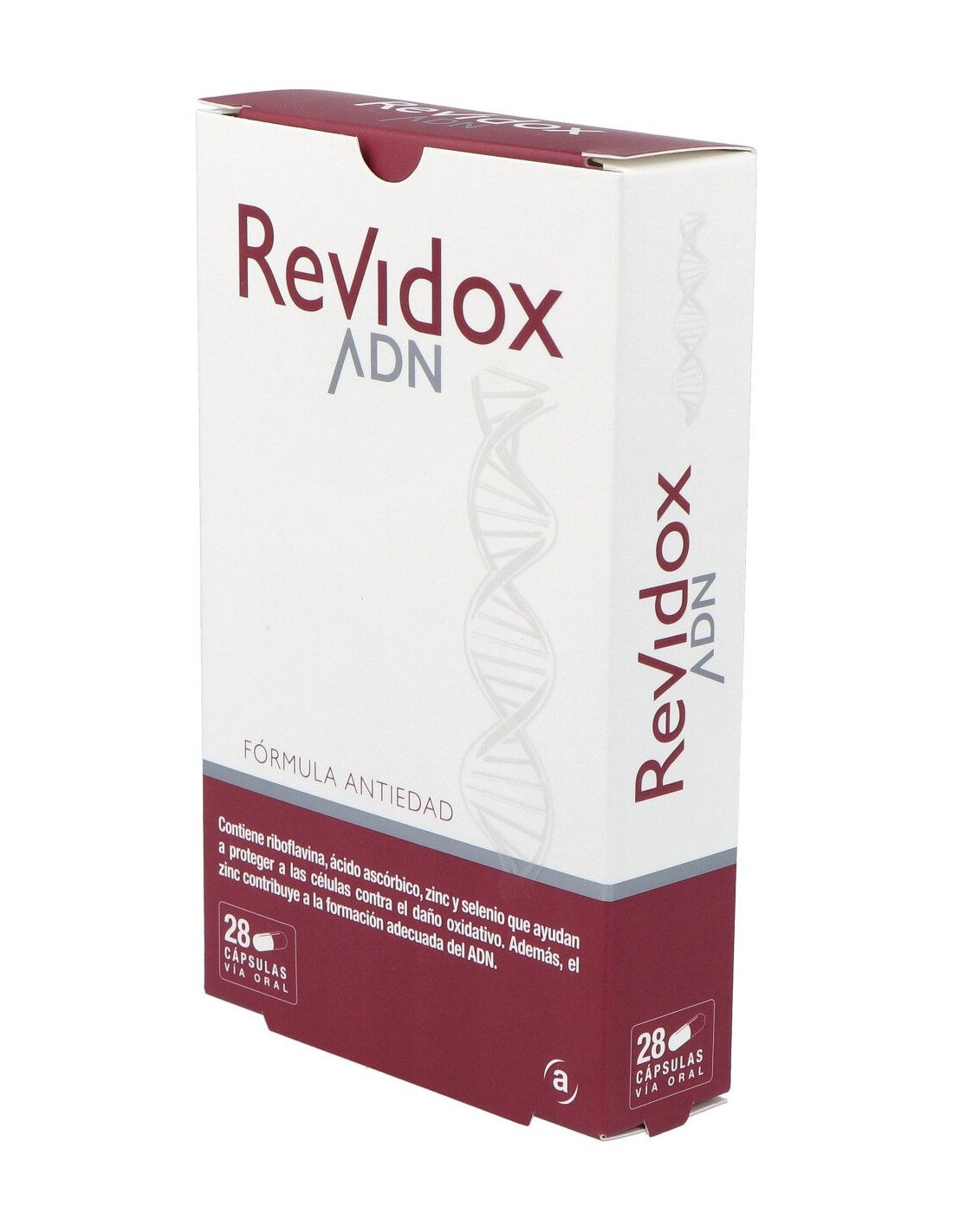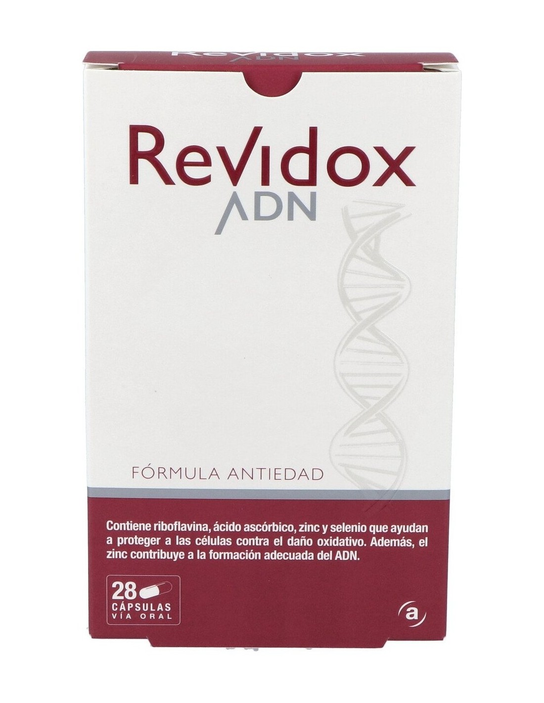 Revidox ADN 28cáps es un complemento alimenticio con propiedades revitalizantes elaborado a base de extracto de granada y extracto de uva enriquecido con resveratrol, vitamina B2 (riboflavina), vitamina C y minerales como el selenio y el zinc, ayuda a proteger la piel frente al envejecimiento celular.