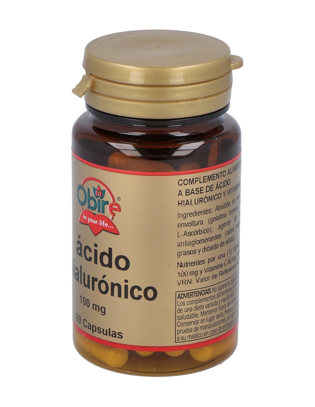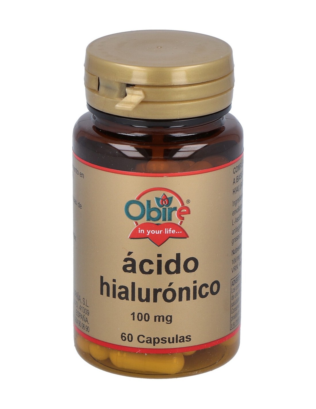 Obire Ácido Hialurónico 100mg es un complemento que te aportará un extra de ácido hialurónico para favorecer la salud de tu organismo, en especial de la piel y las articulaciones.