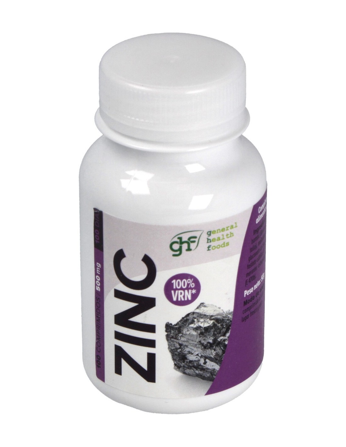 GHF Zinc 50% CDR 500mg es un complemento alimenticio que te ayudará a cuidar la piel, las uñas y el cabello, gracias a su acción antiedad y antioxidante.