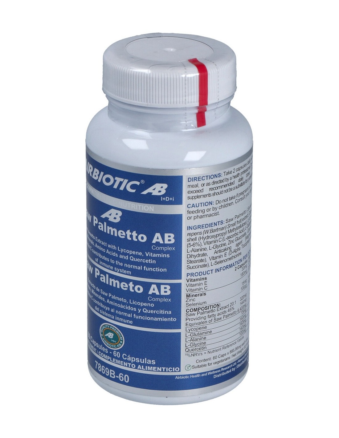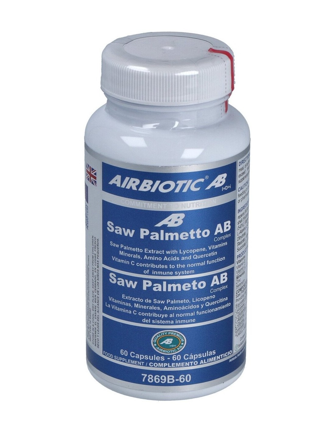 Airbiotic Saw Palmetto AB Complex 60 Cápsulas es un complemento elaborado a base de extracto concentrado de saw palmetto. Contribuye a la protección de las células frente al estrés oxidativo. Asimismo, gracias al zinc, favorece el mantenimiento de niveles normales de testosterona en sangre. Enriquecido con licopeno, l-alanina, l-glicina, L-glutamina y quercitina. Con vitamina C, E y selenio que contribuyen a la protección de las células frente al estrés oxidativo. Asimismo, el zinc contribuye al mantenimiento de niveles normales de testosterona en sangre.