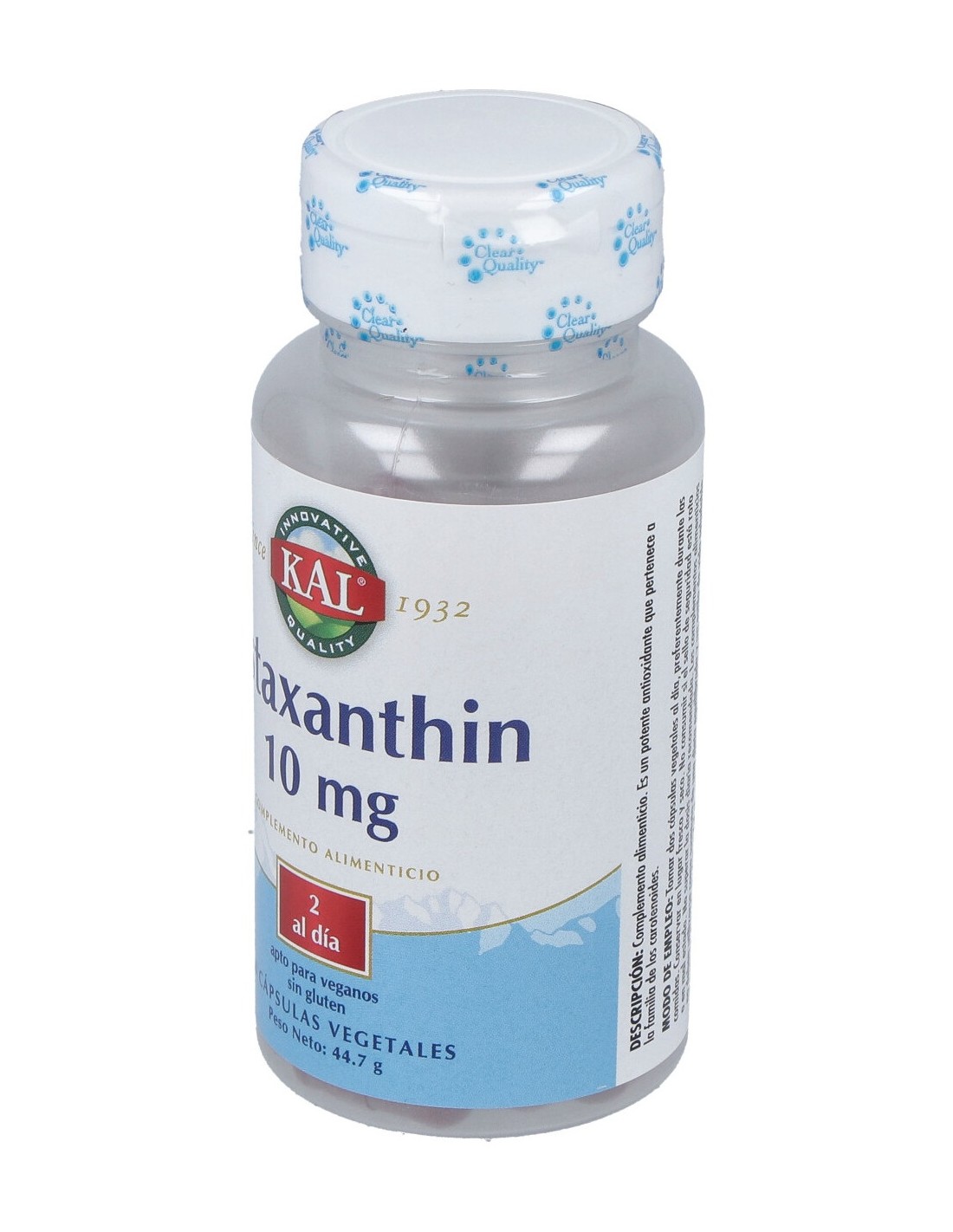 Kal Astaxanthin 60caps complemento nutricional a base de vitamina c no ácida que ayuda a cuidar la función inmunitaria, la salud cardiovascular, el estado de la piel y la vida, pues contribuye a mantener su salud. la astaxantina, presente en astaxanthin de kal, destaca por su eficacia como antioxidante protector del daño producido por la radiación. protege a las células, órganos y tejidos celulares del daño oxidativo, actúa como antioxidante específico de la piel y también tiene efecto protector de la mucosa gástrica. en este suplemento se combina la astaxantina con hierro, ya que es uno de los nutrientes que más favorece la absorción y asimilación de este mineral, estando especialmente indicado en casos de anemia.
