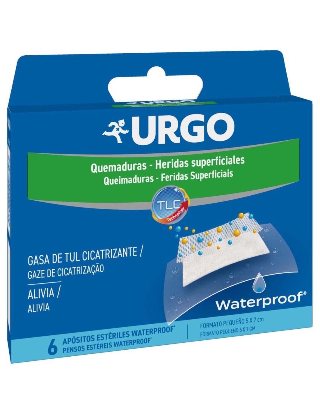 En caso de quemaduras, el apósito debe superar ampliamente la superficie de la quemadura para permitir una absorción óptima de los exudados (el tamaño de la compresa, la parte blanca del apósito, debe ser al menos el doble del de la quemadura).