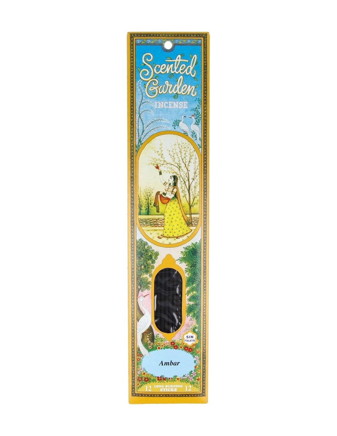 Incienso sin ftalatos. Aconsejado para la meditación, lectura, o simplemente relajarse. La casa se perfuma con fragancias naturales.INCIENSO STICK AMBAR 12uds SCENTED GARDEN de RADHE SHYAM