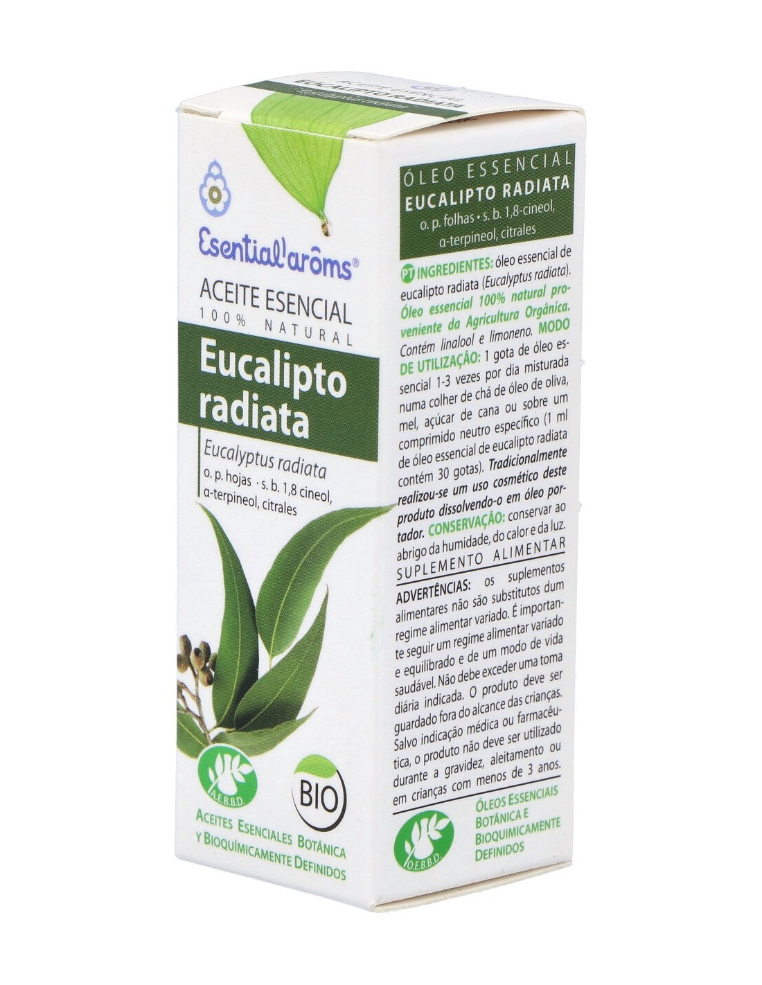 Aceite esencial de Eucalipto, el producto contiene la esencia volátil de una planta o árbol aromático. Contiene una gran cantidad de moléculas aromáticas con diversas propiedades terapéuticas. El eucalipto radiata tiene un tronco gris azulado, corteza caduca, hojas jóvenes redondeadas y hojas lanceoladas adultas. Los aborígenes australianos usan hojas frescas para vendar las heridas. Además, contribuye a tratar resfriados que afecta a las vías respiratorias altas y a los oídos ya que actúa como expectorante, descongestivo nasal fluidificando la acumulación excesiva de mocos además de ser antiinfeccioso.