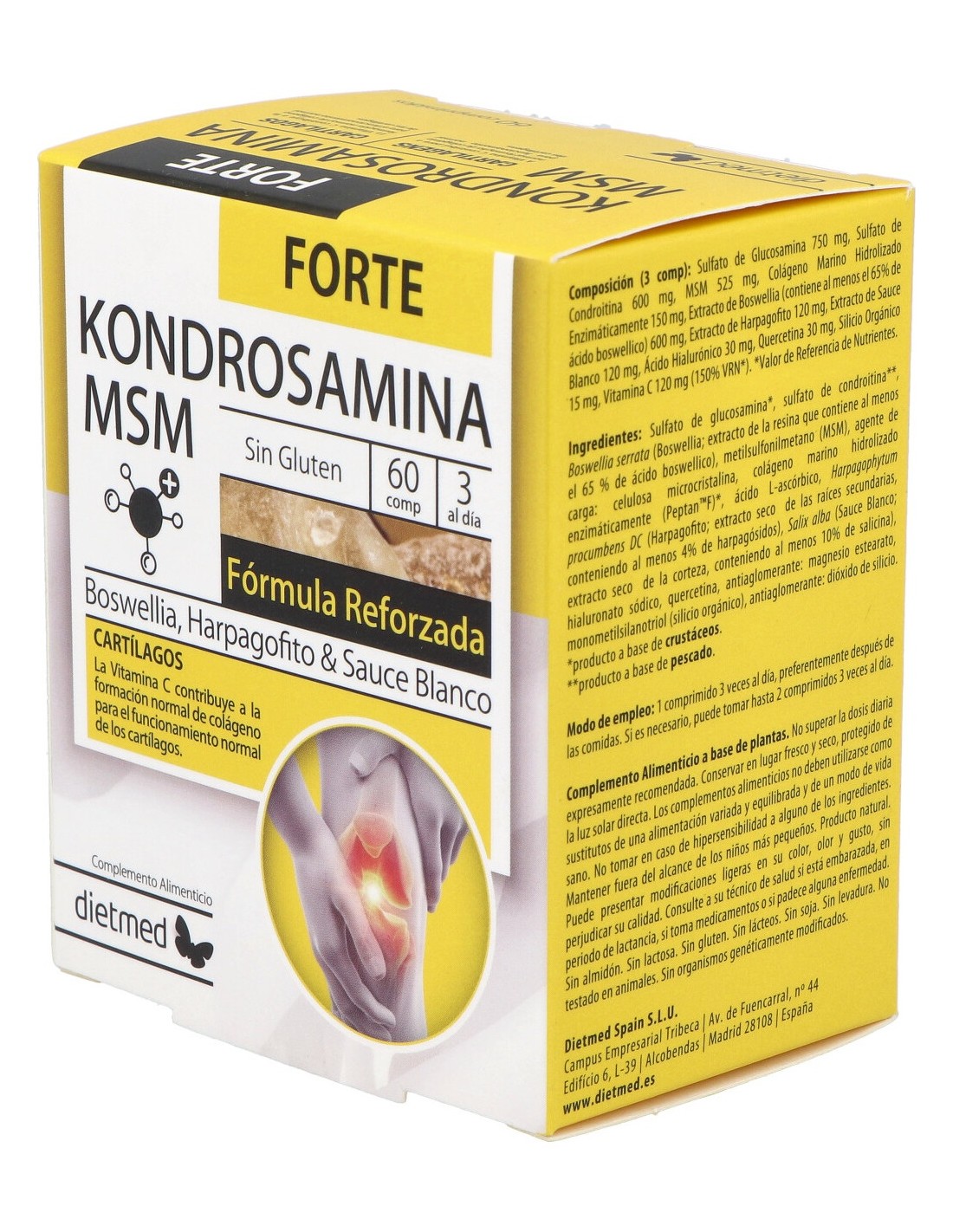Fórmula reforzada con ácido hialurónico, colágeno hidrolizado, sauce blanco y harpago. Con acción más analgésica.