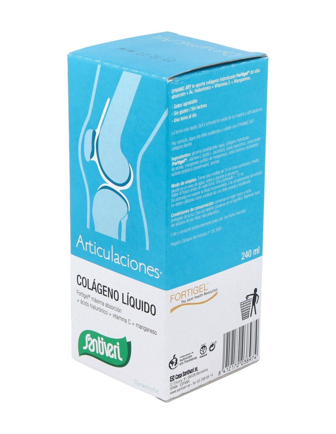 Santiveri Colágeno Líquido Articulaciones 240 Ml es un jarabe líquido con vitamina C, ácido hialurónico y magnesio. Estos componentes refuerzan y protegen los huesos y articulaciones.