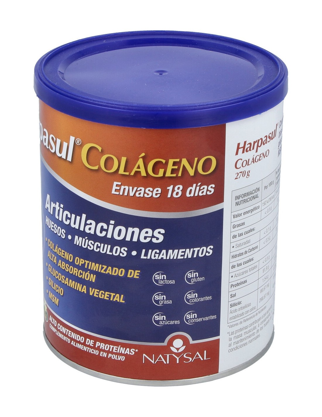 Colágeno hidrolizado, sulfato de glucosamina (origen vegetal), metil sulfonil metano (MSM), aroma de vainilla, ácido ortosilícico estabilizado con colina.