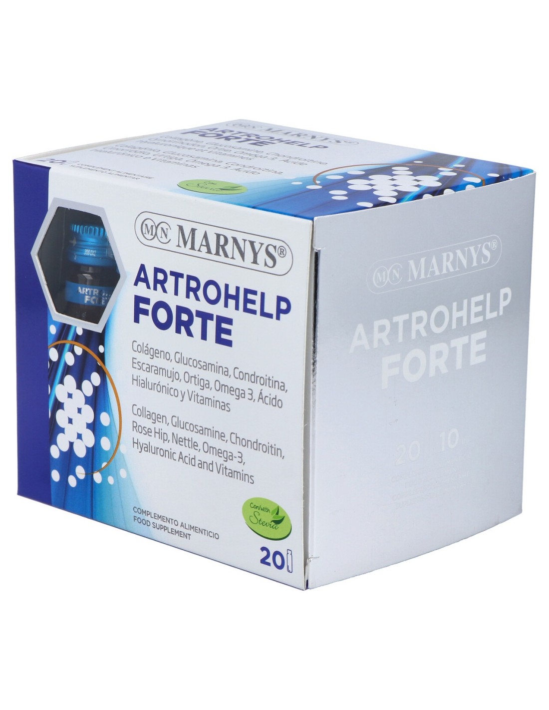Complemento alimenticio formulado a base de glucosamina, colágeno y ácido hialurónico. Presentación en 20 viales bebibles. Contribuye a la nutrición y absorción de colágeno en huesos y cartílagos para favorecer la salud osteorticular. Aporta proteínas, lípidos y 250mg de vitamina C. Inidicado para quienes quieran mejorar la salud de sus huesos y articulaciones.