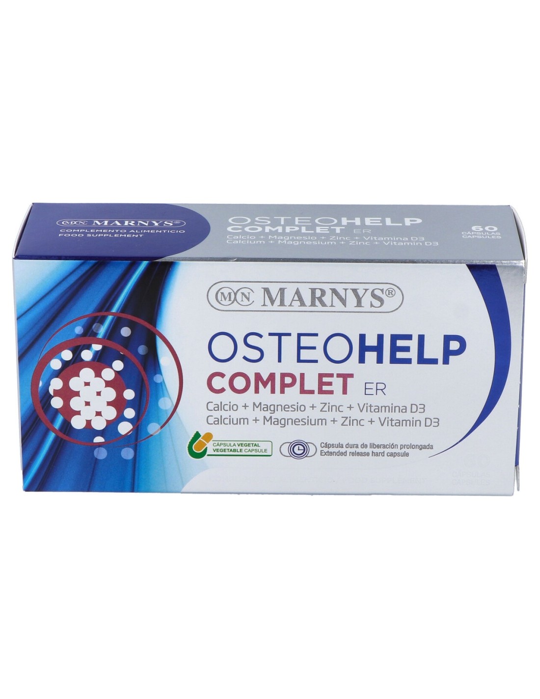Complemento alimenticio en cápsulas duras de liberación prolongada elaboradas a pase de calcio, magnesio, zinc, cobre, manganeso, selenio y vitamina D3 que contribuye a preservar la integridad ósea y ayuda a disminuir el riesgo de fracturas en personas adultas. Además, gracias a su tecnología de liberación prolongada que ayuda a optimizar la absorción de los ingredientes.