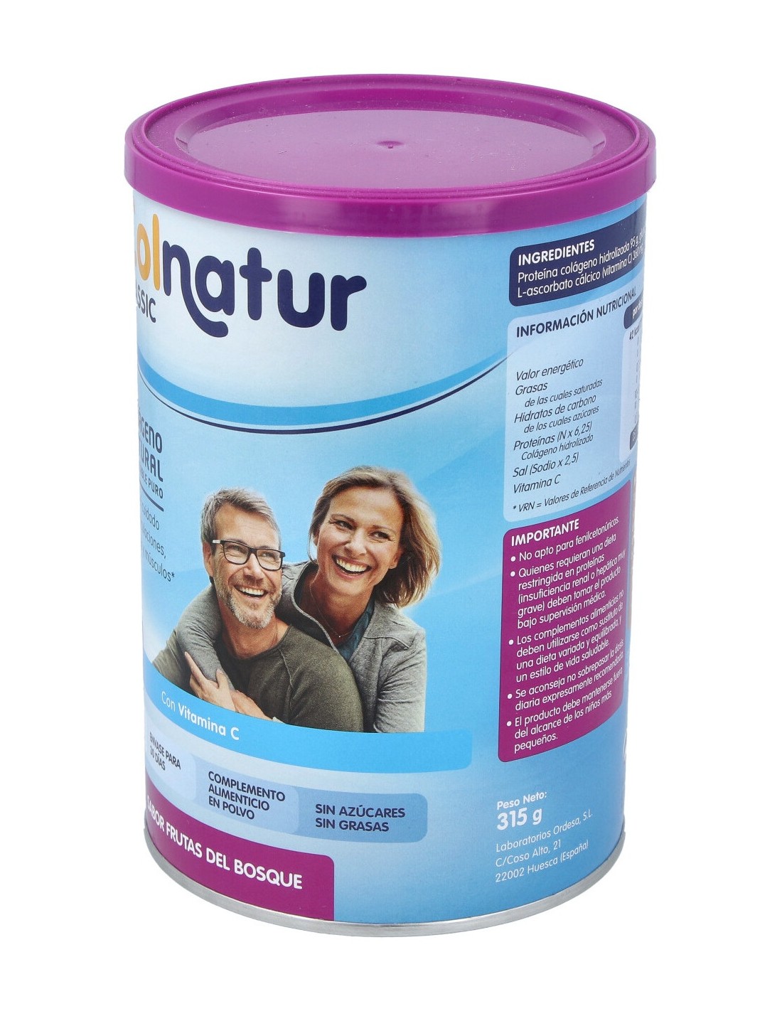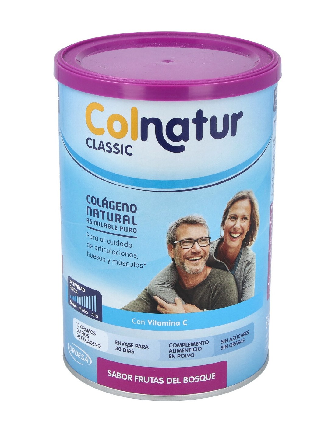Colnatur® Classic sabor frutas del bosque es un suplemento compuesto por proteína pura hidrolizada de colágeno y vitamina C, aportando a diario los aminoácidos de colágeno que necesita el cuerpo para protegerse del envejecimiento.