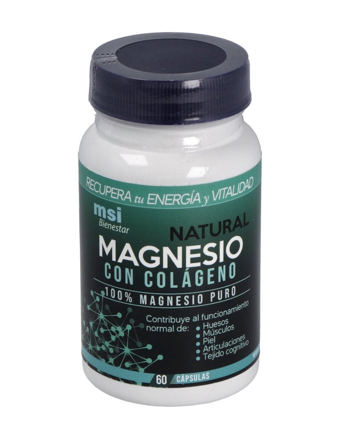 MSI Bienestar Magnesio Natural con Colágeno es un complemento alimenticio que mejora la reparación de los tejidos como la piel, tendones y músculos. Gracias a su formulación aporta los siguientes beneficios: