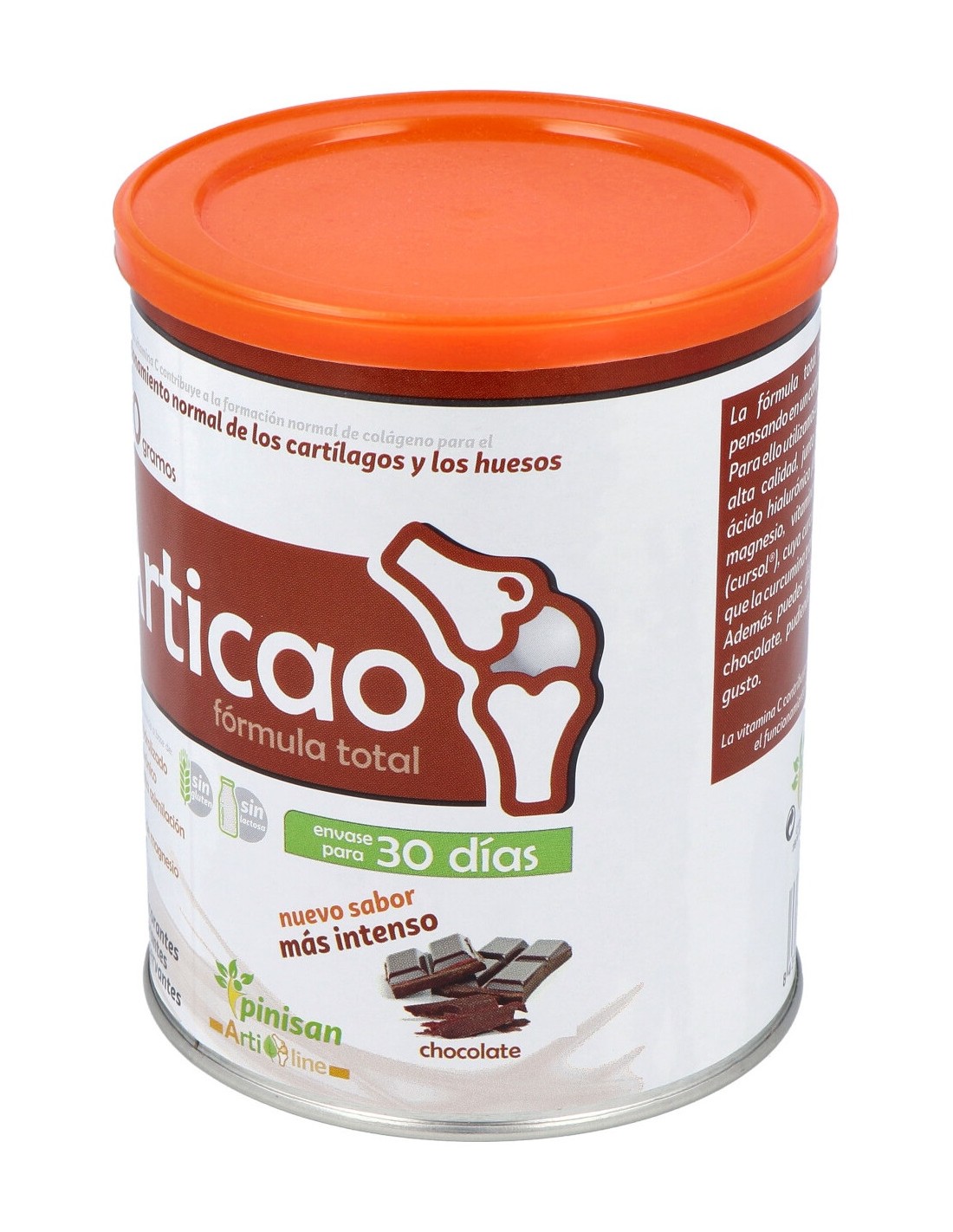 Complemento alimenticio con sabor a chocolate que ayuda a mejorar el bienestar articular. Elaborado con una fórmula total de Articolag, desarrollada utilizando colágeno hidrolizado de la más alta calidad, junto a silicio procedente de bambú, ácido hialurónico (de origen vegetal), gluconato de magnesio, vitamina C y cúrcuma de alta asimilación (cursol®), cuya curcumina es 12 veces más asimilable que la curcumina tradicional. La vitamina C contribuye a la formación normal de colágeno, para el funcionamiento normal de cartílago, huesos y piel. Se puede edulcorar al gusto.