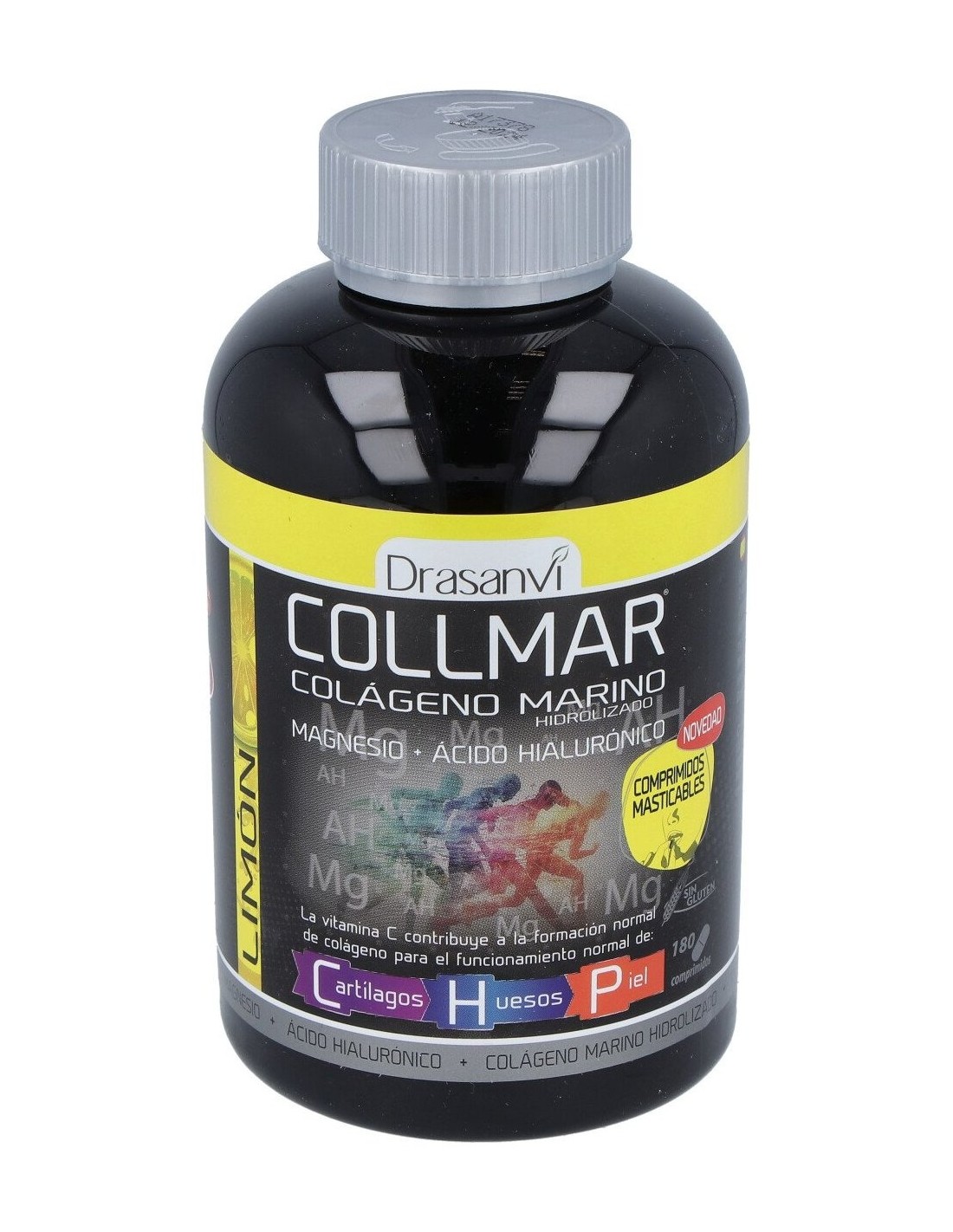 "El Colágeno Marino masticable con sabor a limón es un complemento alimenticio a base de colágeno marino que está enriquecido con Vitamina C y Magnesio, de manera que actúa favoreciendo el buen funcionamiento de los huesos, los cartílagos y la piel. Además, favorece el aumento de masa muscular y contribuye a una adecuada síntesis proteica. No contiene grasas, azúcares o colesterol en su composición.