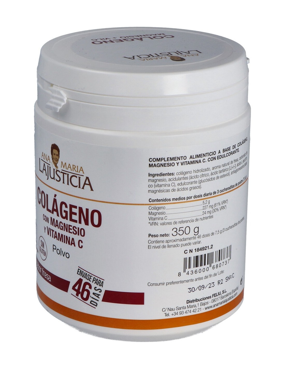 Este complemento contiene colágeno, la proteína más abundante en el cuerpo humano, siendo el constituyente esencial de los cartílagos, tendones, huesos (90%) y piel (70%); magnesio, un mineral que refuerza el funcionamiento de los músculos y el sistema nervioso y vitamina C, que colabora en la formación de proteínas y es adecuada para la formación de tejidos, además de tener propiedades antioxidantes.