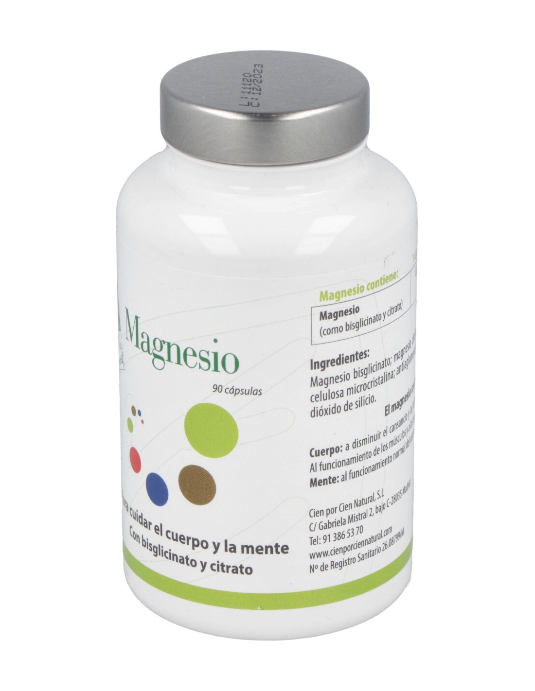 100% Natural Magnesio 90 cápsulas es un complemento alimenticio a base de magnesio que nos ayudará a cuidar nuestra mente y cuerpo. El magnesio es un nutriente que colabora a reducir el cansancio y fatiga de nuestro cuerpo, además de contribuir en nuestro metabolismo energético normal y a la síntesis proteica normal.