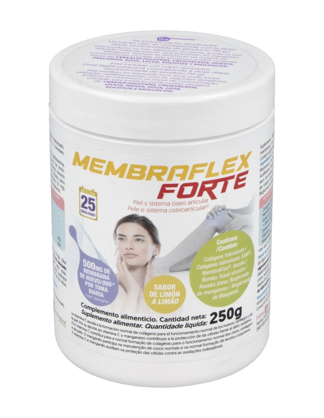 Complemento alimenticio con sabor a limón que ayuda a cuidar de la piel y del sistema óseo ocular. Está elaborado a base de colágeno hidrolizado, membrana de huevo, extractos vegetales, vitaminas y minerales. Su aporte de vitamina C y manganeso contribuye a la protección de las células frente al daño oxidativo, mientras que la membrana de huevo favorece la salud ocular.