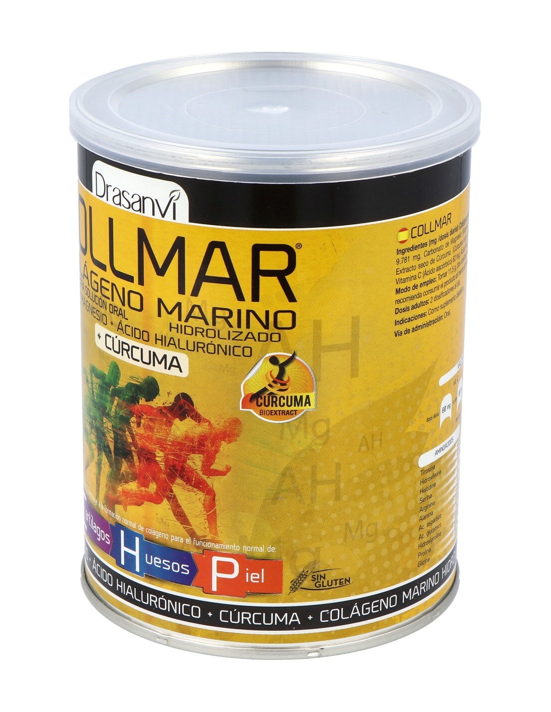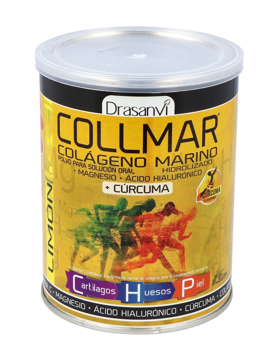 Drasanvi Collmar® Colágeno Marino Magnesio Cúrcuma Limón 300g es un complemento alimenticio a base de colágeno marino, enriquecido con vitamina C y magnesio.
