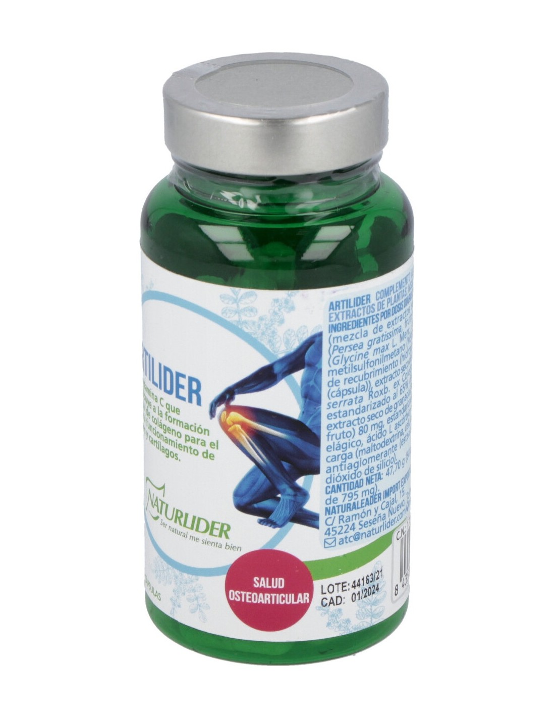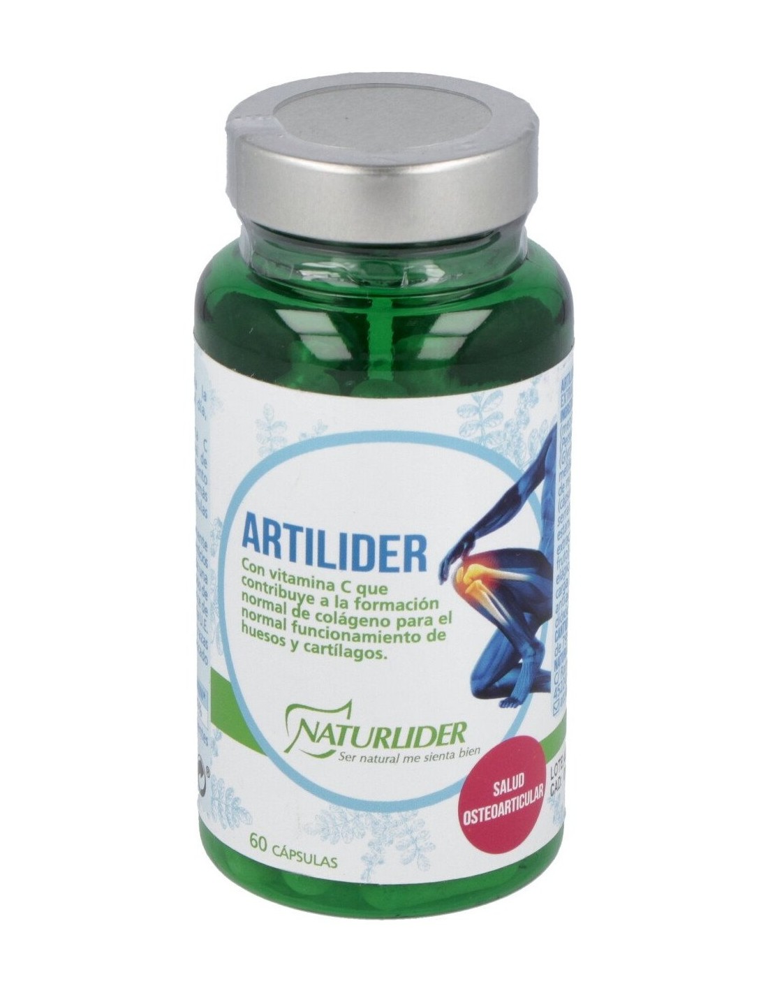 Naturlíder Artilíder 60 cápsulas es un suplemento natural, de gran ayuda para regenerar las articulaciones dañadas y para intentar frenar el desgaste que sufren los huesos con el paso del tiempo. Contribuye además a bajar la inflamación y a reducir el dolor provocado por la osteoartritis, bursitis, artritis reumatoide, tendinitis y otras enfermedades inflamatorias dolorosas de las articulaciones.