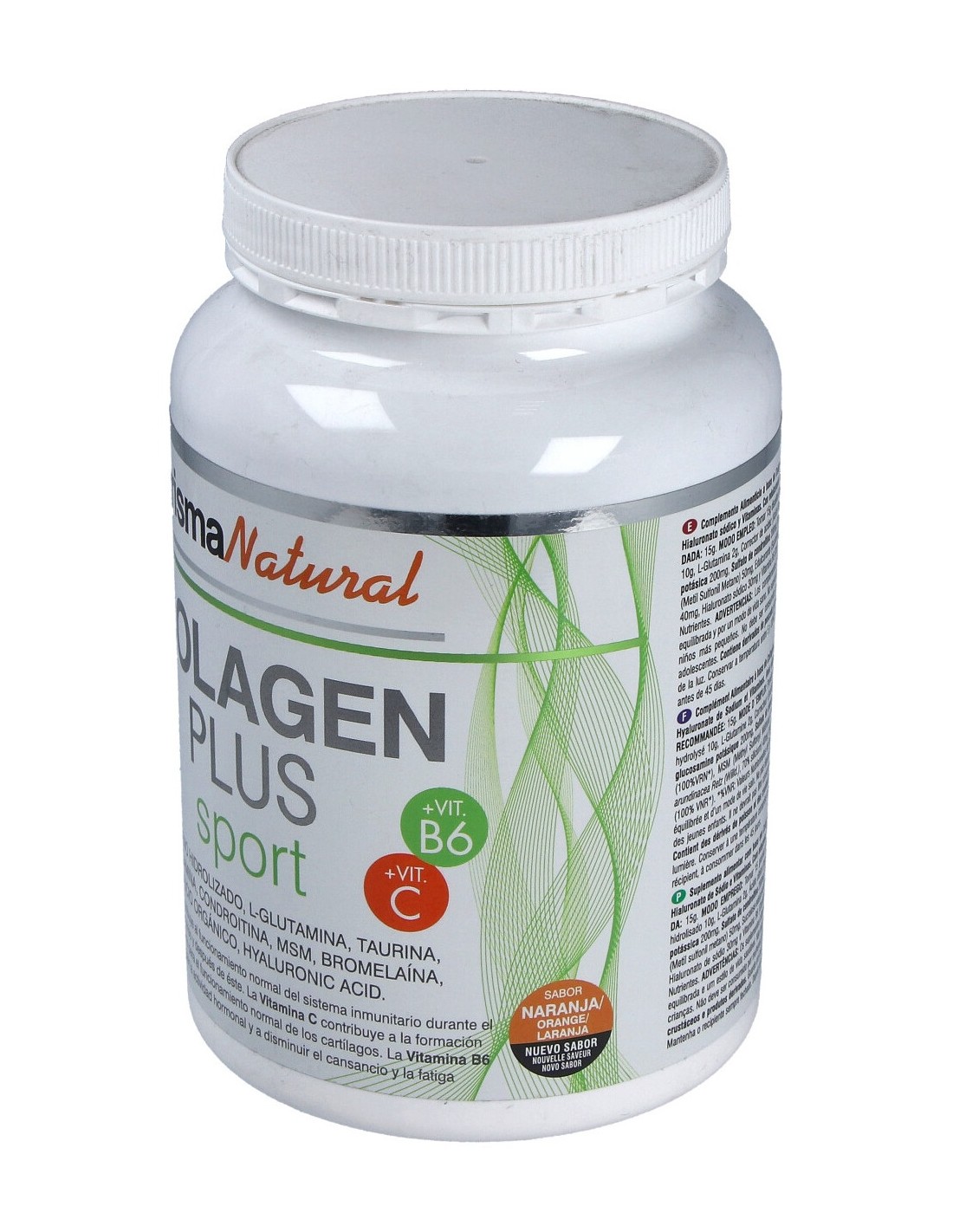 Colágeno 10 g, vitamina C 80 mg, ácido hialurónico 30 mg, silicio 28 mg, l-glutamina 2 g, glucosamina 200 mg, condroitina 200 mg, bromelina 200 mg, taurina 200 mg, msm (metil sulfonil metano) 50 mg, vitamina B6 1,4 mg.