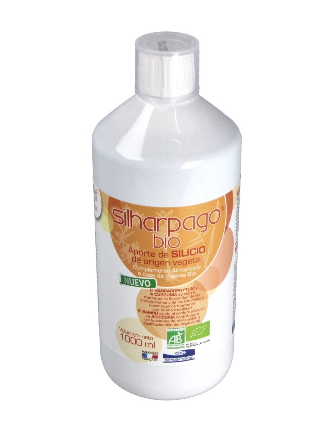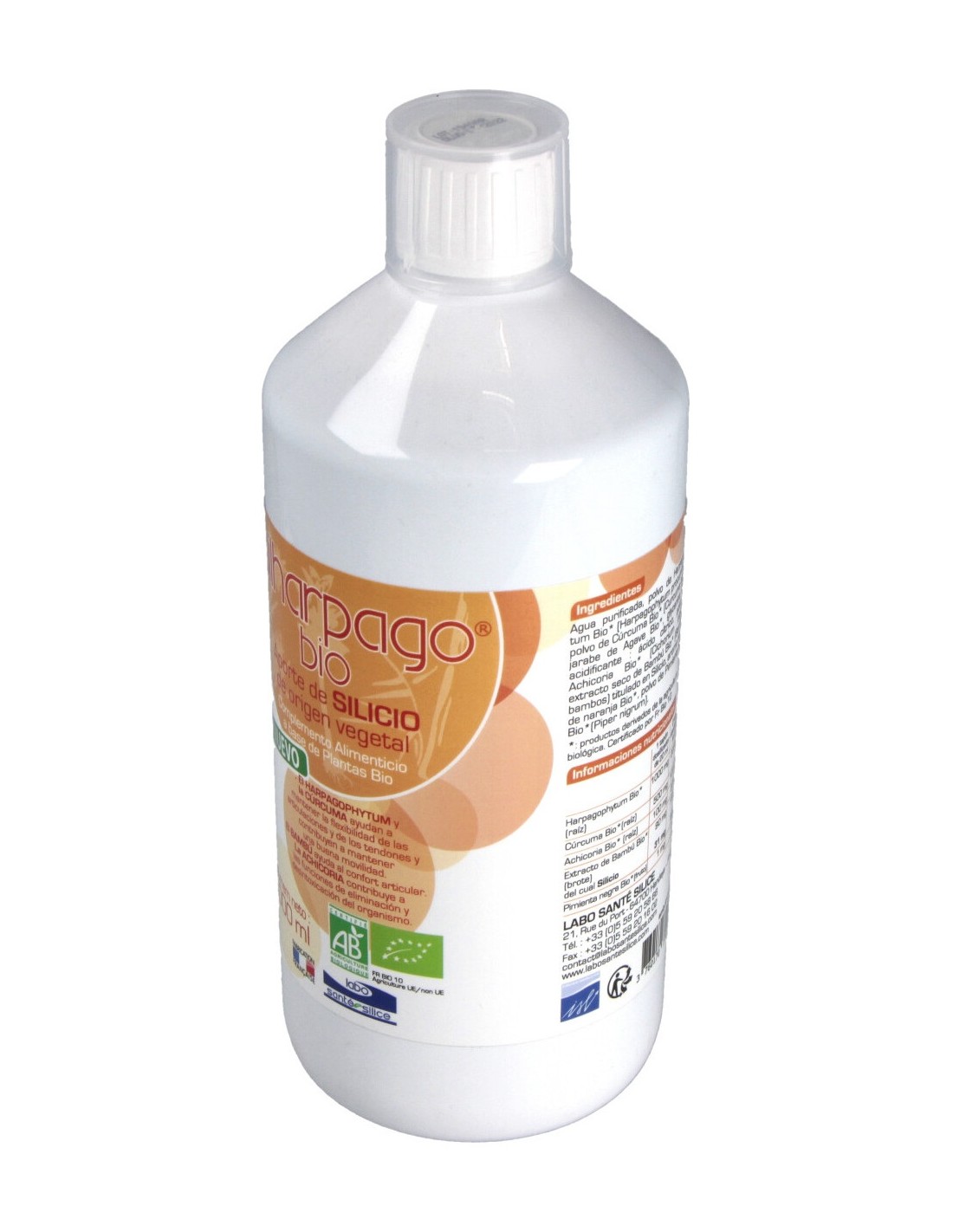 Ayuda a mantener la flexibilidad de las articulaciones y de los tendones, contribuyendo a una buena movilidad. Apto para vegetarianos.SILHARPAGO BIO 1litro de LABO SANTE SILICE