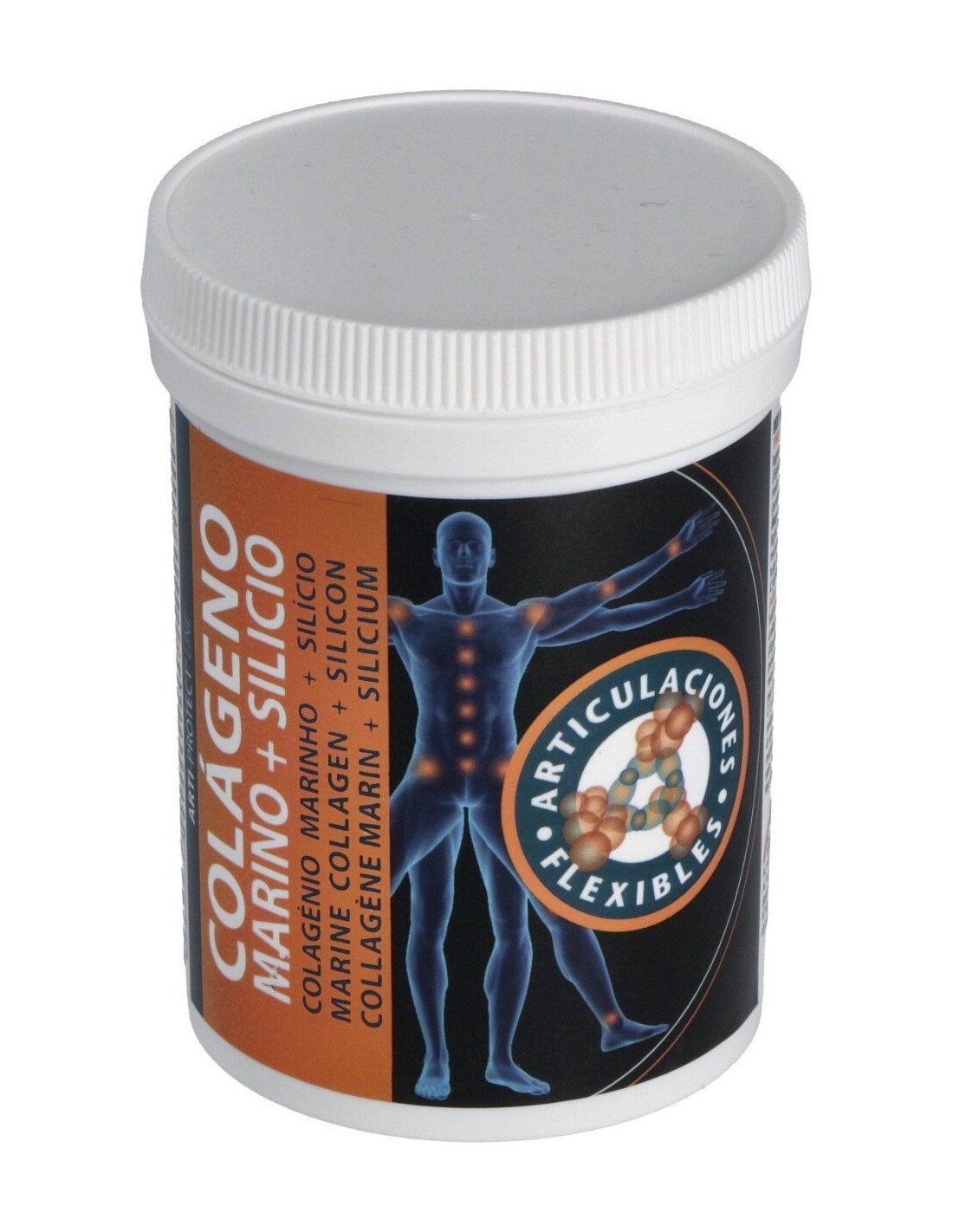 Complemento alimentico a base de la combinación de colágeno marino con el silicio. Contribuye a mantener las articulaciones flexibles. Favorece el funcionamiento de la piel, los cartílagos, tendones, articulaciones, uñas y cabello en buen estado. Contribuye a detener el desgaste de las articulaciones, dado por problemas de artritis, artrosis o reuma.