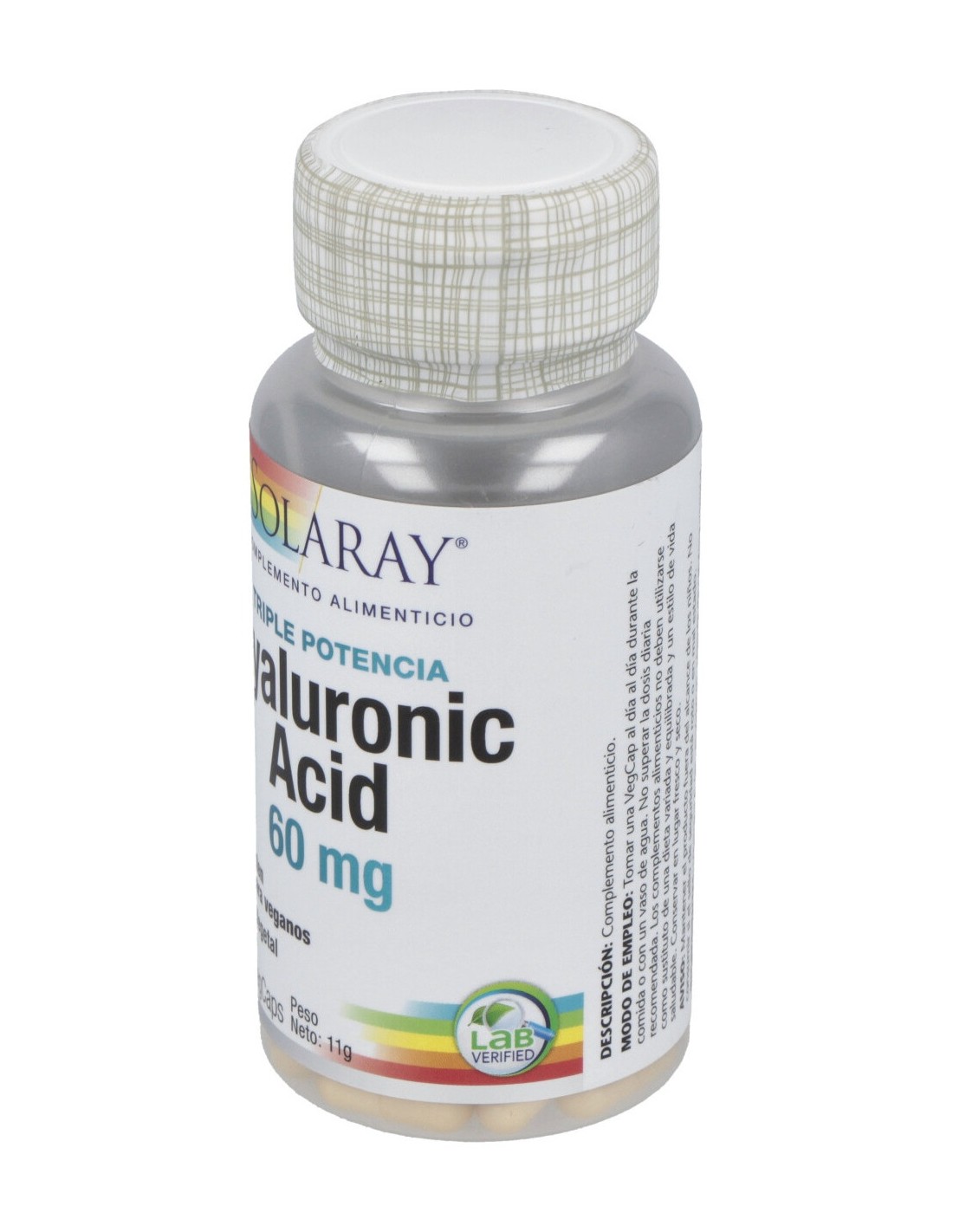 Se presenta en cápsulas con protección entérica, que ayudan a que el ingrediente alcance en óptimas condiciones el intestino delgado, donde es absorbido. Esta fórmula contiene vitamina C para ayudar al normal metabolismo del ácido hialurónico. Apto para veganos.