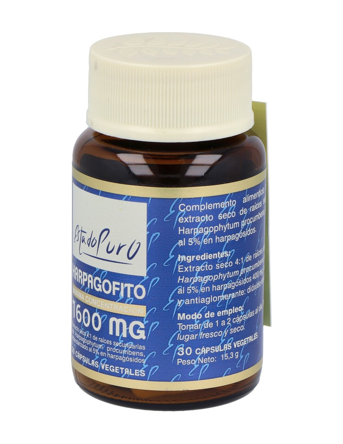 Extracto seco 4:1 de raíces secundarias de Harpagophytum procumbens (Equivalentes a 1600 mg de polvo de raíces)......................400 mg