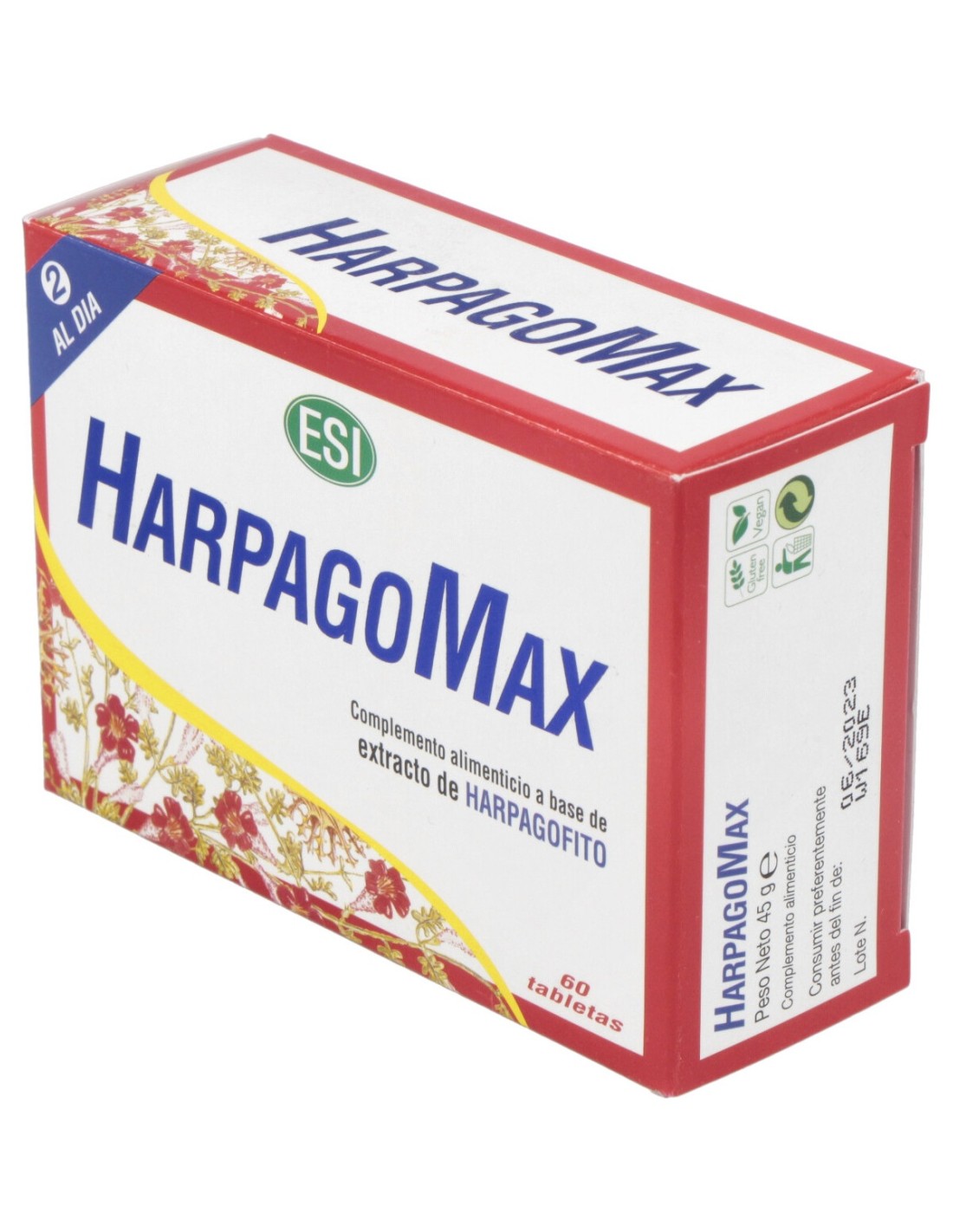 Las tabletas HarpagoMax de ESI son un complemento alimenticio que ayuda a evitar la inflamación de tendones, músculos y articulaciones en general. Un tratamiento natural que combina extractos sexos de harpagofito (harpagósido), ayuda intensamente a personas con artritis, reumatoides, artrosis e inflamaciones articulares.
