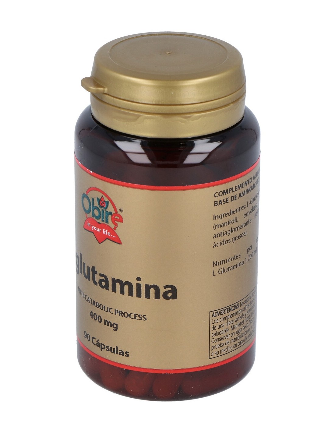 L-glutamina, Agente de carga (manitol), Envoltura (gelatina bovina), Antiaglomerante (sales magnésicas de ácidos grasos).