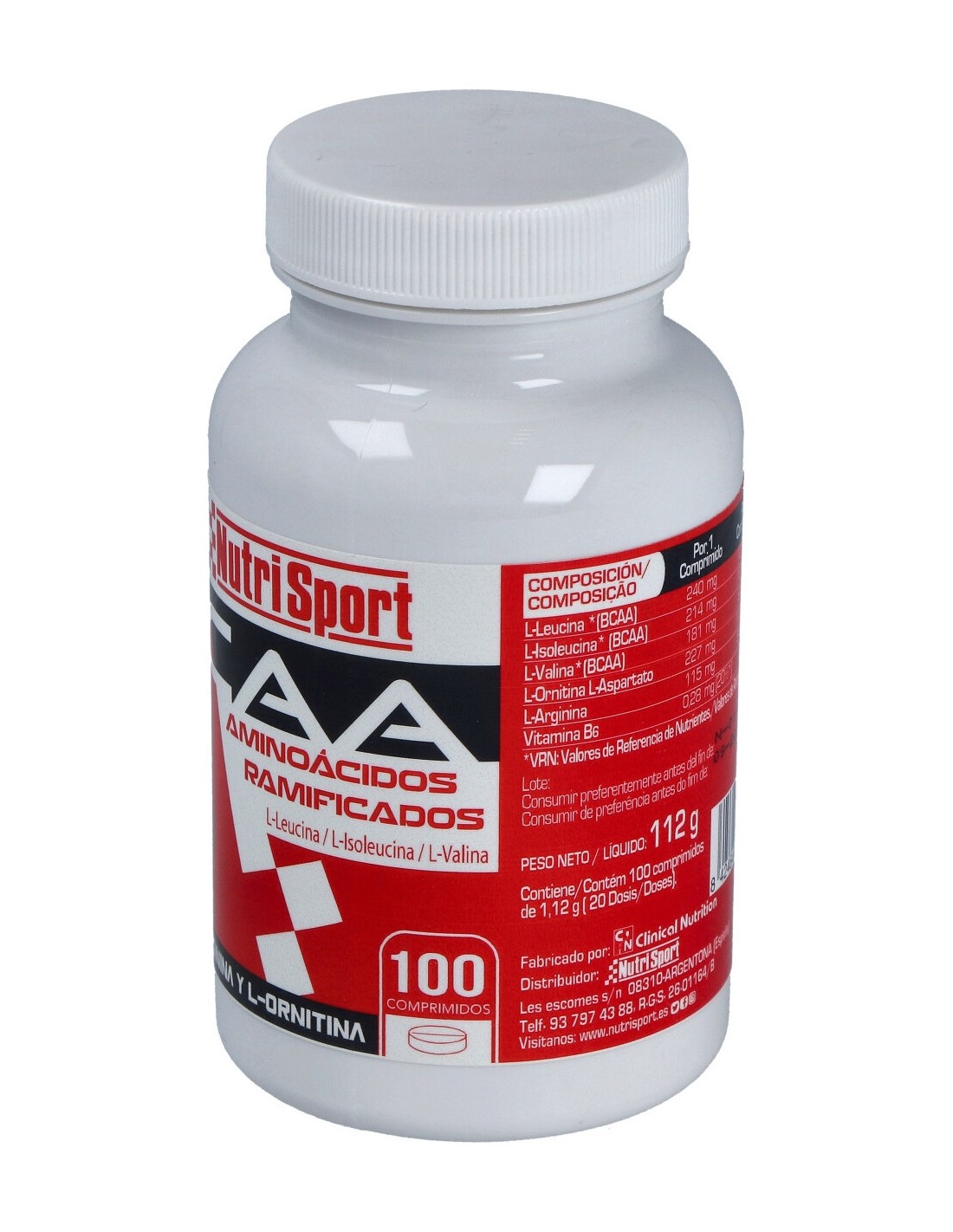 Los BCAAs (aminoácidos ramificados, en inglés Branched Chain AminoAcids) constituyen un porcentaje muy importante en la cadena de aminoácidos de las proteínas musculares. Y no sólo son representativos en la musculatura, sino que también estimulan los procesos de síntesis de proteínas. Por ello resultan esenciales en procesos de regeneración del tejido muscular. BCAA te aporta Leucina, Isoleucina y Valina en las proporciones adecuadas para lograr un mayor efecto anabólico.AMINOACIDOS RAMIFICADOS 1gr BCCA 100comp de NUTRISPORT