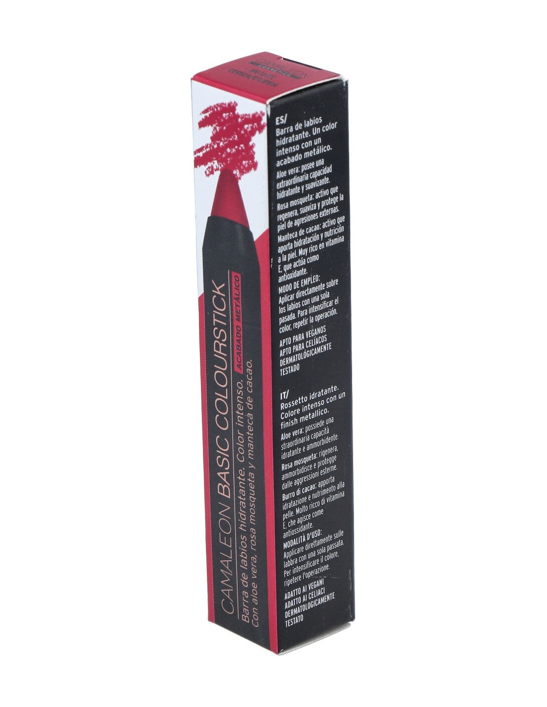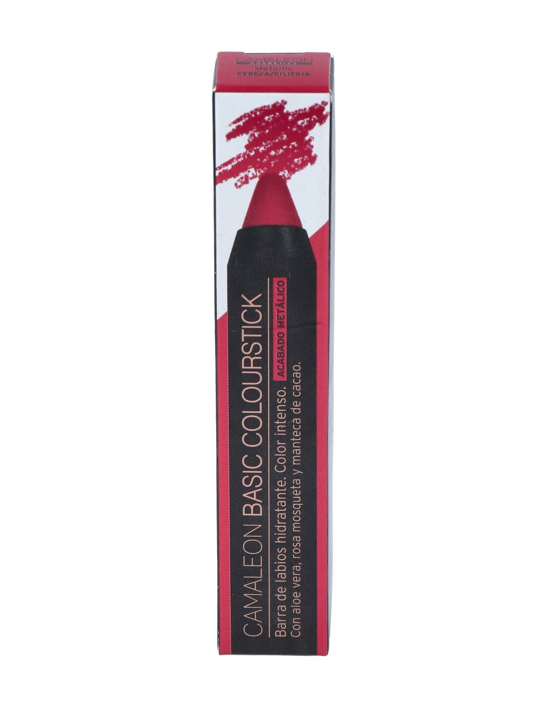 La barra de labios de Camaleon en color cereza metalizado da un toque sensual al color de los labios. Su tonalidad es intensa y combina bien con todos los tonos de piel. Se trata de un maquillaje con pigmentos muy concentrados. Contiene emolientes que nutren la delicada piel de los labios. Su fórmula está compuesta por rosa mosqueta, que protege de los factores externos y actúa como suavizante; aloe vera, que aporta máxima hidratación y manteca de cacao, que se encarga de nutrir, hidratar y actúa como antioxidante.