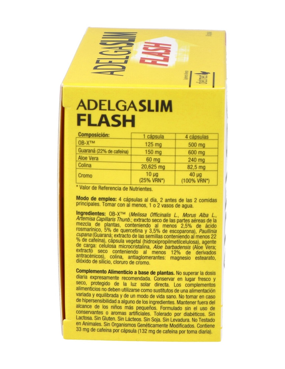 Por 1 cápsula: OB-X™ 125 mg, Guaraná (22% de cafeína) 150 mg, Aloe Vera 60 mg, Colina 20,625 mg, Cromo 10 μg (25% VRN*).