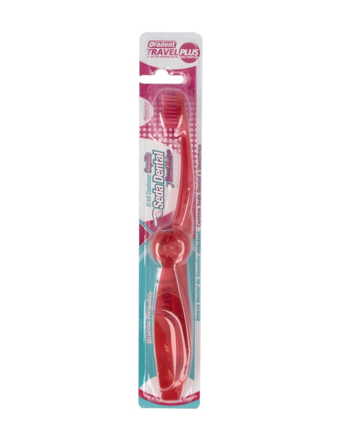 - Cepillo dental de diseño plegable 1ud: tiene un tamaño reducido ideal para llevarlo donde sea, o bien dentro del bolso o en el mismo bolsillo de tu chaqueta o pantalón. Sus filamentos cruzados de punta redondeada y su mango ergonómico lo convierten en un cepillo eficaz y que limpia tu boca en profundidad.