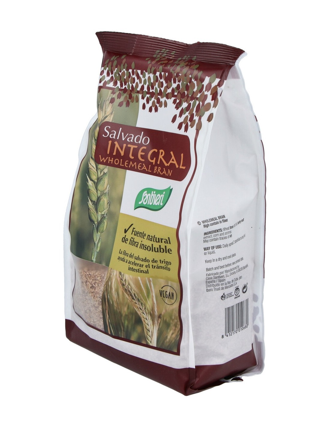 Salvado integral de trigo que contribuye a regular el tránsito intestinal. Es fuente natural de fibra insoluble y vitaminas del grupo B, que ayudan a reforzar el sistema inmune y a mejorar los procesos digestivos. Además, favorece el metabolismo, energético y promueve el mantenimiento de los niveles de colesterol en sangre. Asimismo, contiene zinc, magnesio y ácido fólico, que facilitan la protección de los tejidos conectivos y masa muscular.