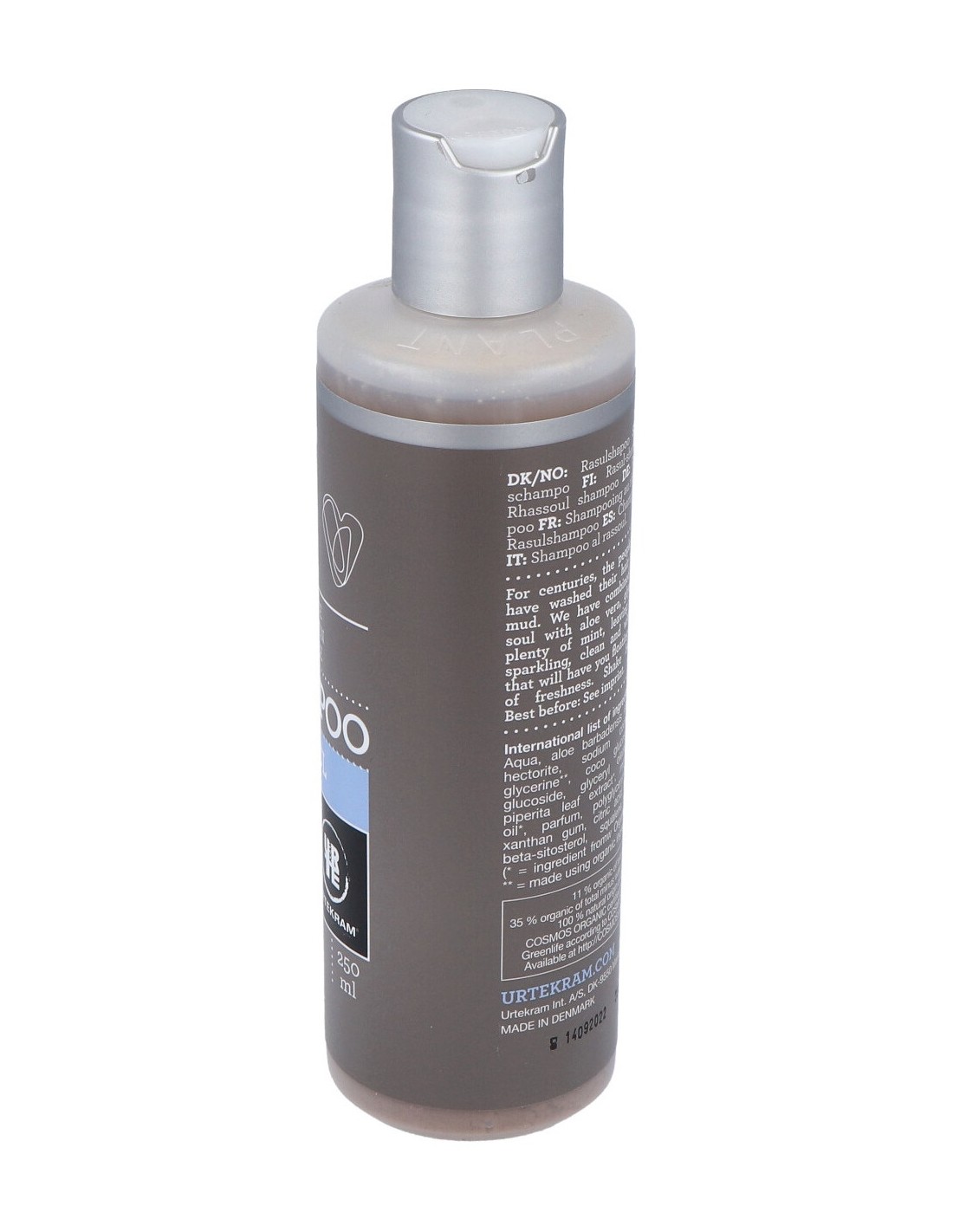 Champú de rasul para cabellos grasos. Esta arcilla absorbe impurezas y las grasas. En este champú se combina con aloe vera, glicerina y abundante menta, dejando el cabello brillante, limpio, con volumen y un aroma fresco. Con agentes limpiadores tensioactivos suaves de origen vegetal que limpian eficazmente. COSMOS ORGANIC certificado por Ecocert Greenlife. Vegano. No testado con animales.