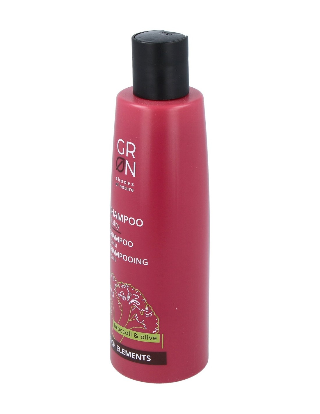 Champú que aporta vitalidad indicado para cabello estresado, contiene aceite de semilla de brocoli que suaviza sin apelmazar y el aceite de oliva hidrata el cabello, la granada y la melisa revitalizan el cuero cabelludo. Fórmula vegana. Producto certificado Cosmos Organic.