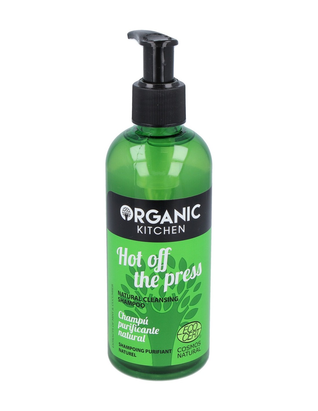 El extracto de menta orgánica purifica delicadamente el cabello aportando una sensación de frescura. El extracto de pepino lo hidrata y fortalece. Apto para veganos, Certificado ECOCERT, Cruelty free. Sin SLS ni parabenos.