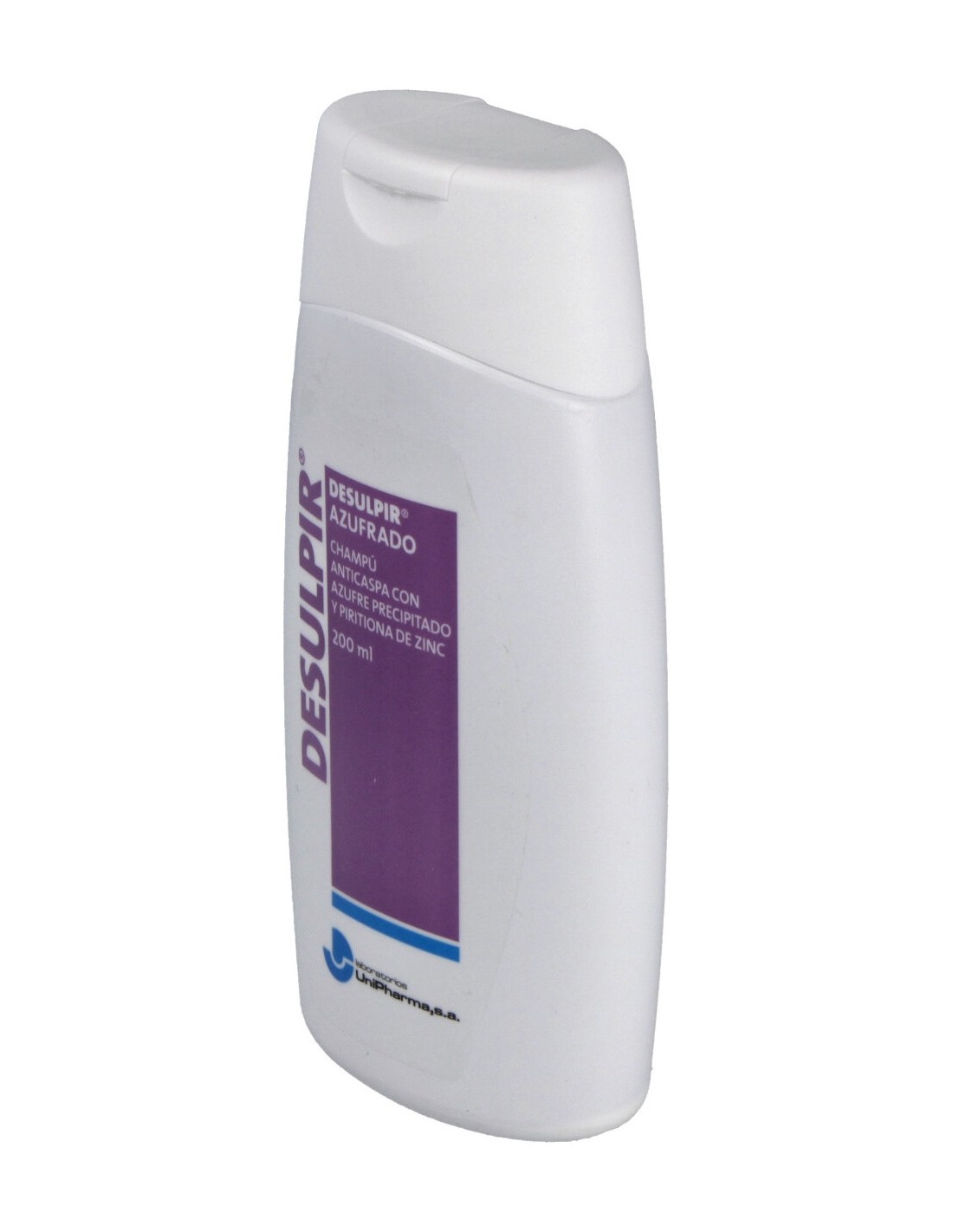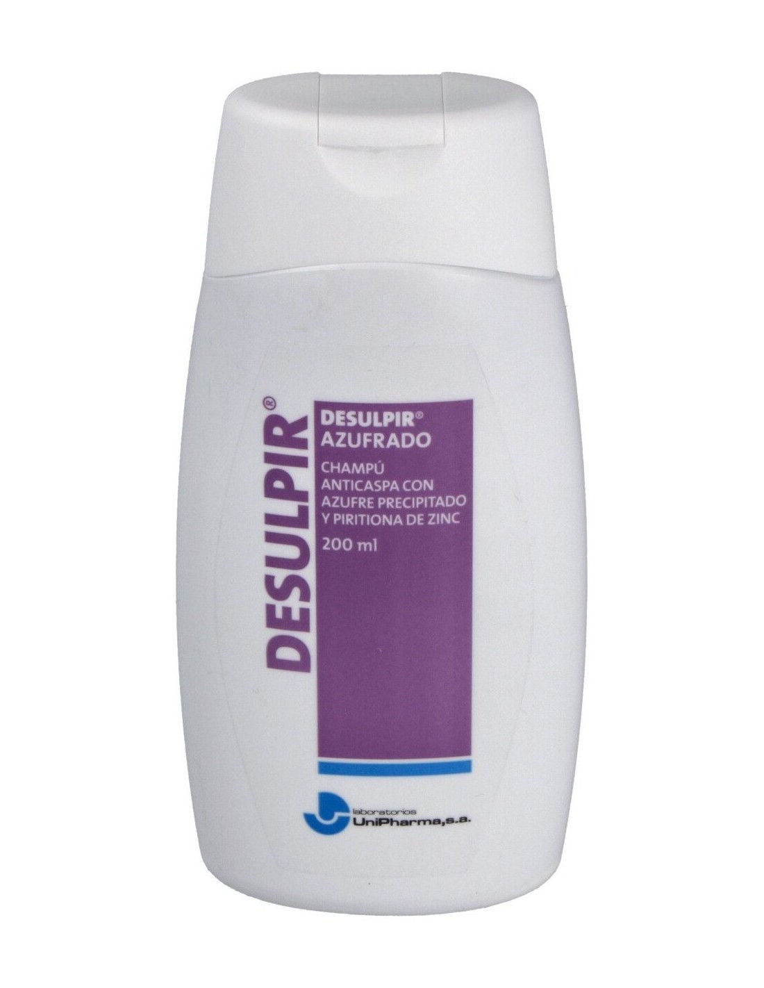 Unipharma Desulpir® azufrado 200ml es un champú anticaspa. Su excelente formulación utiliza la combinación de la acción de la piritona de zinc y del azufre ya que potencian el efecto antimicrobiano. Además, es un chamú altamente espumante y con un alto poder suavizante.