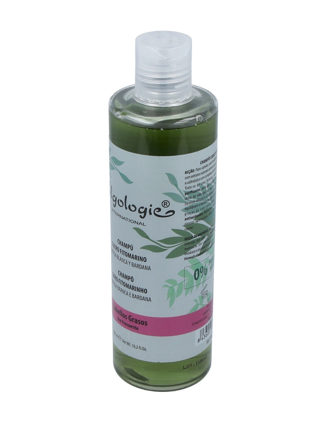 Extracto de Algas Fucus y Laminarias, Extracto de Ortiga, Bardana, Hiedra, Reina de los Prados, Levadura de cereza, Abedul, Hamamelis y Saponaria, Suero Fitomarino isotónico, Vitamina B5, Panthenol y Colágeno hidrolizado.