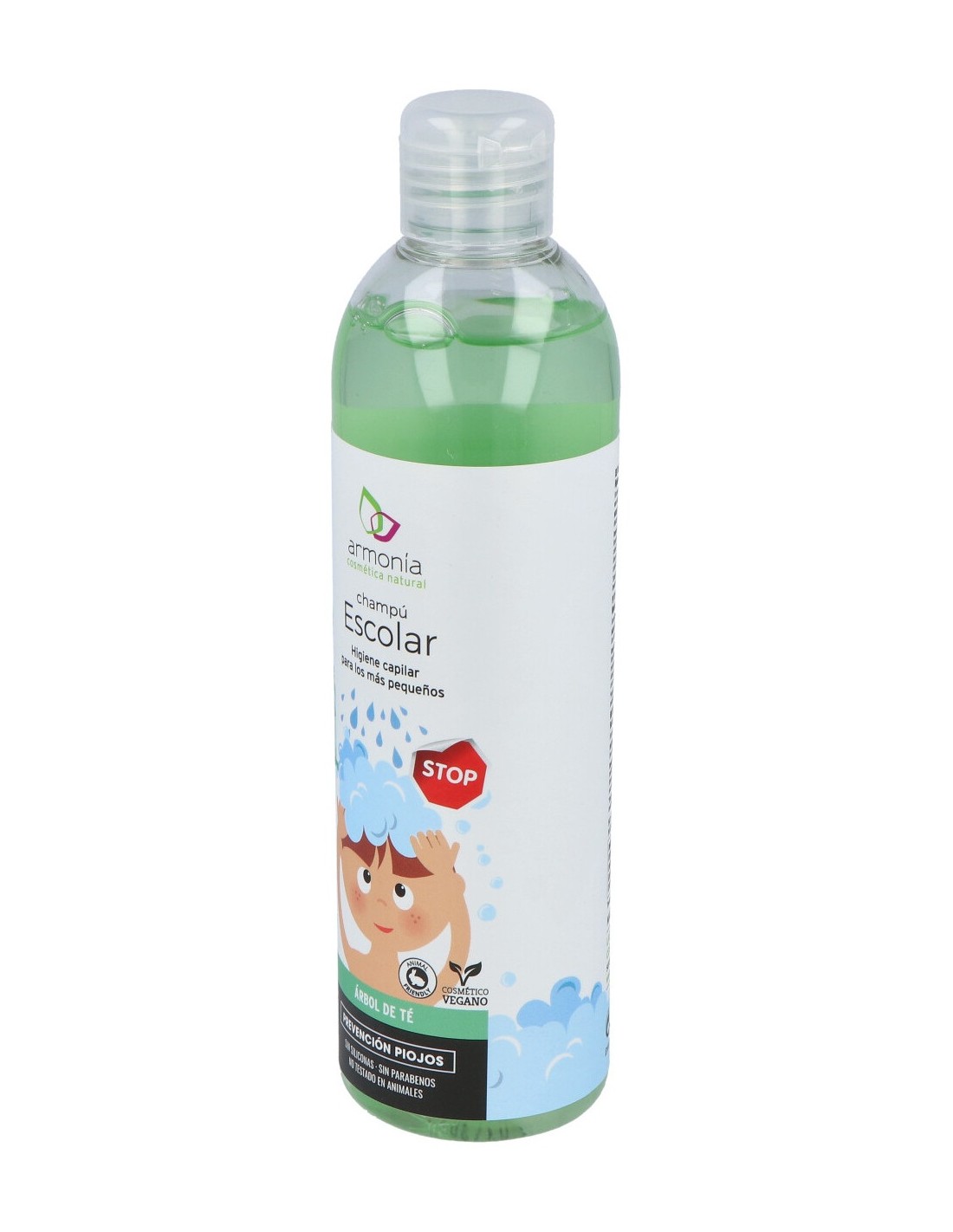 Armonía presenta este champú escolar enriquecido con árbol de té con el cual podrás no sólo eliminar, también prevenir la nueva aparición de piojos y liendres en la cabeza de tu hijo. El árbol de té es un extracto muy utilizado por su acción insecticida natural.