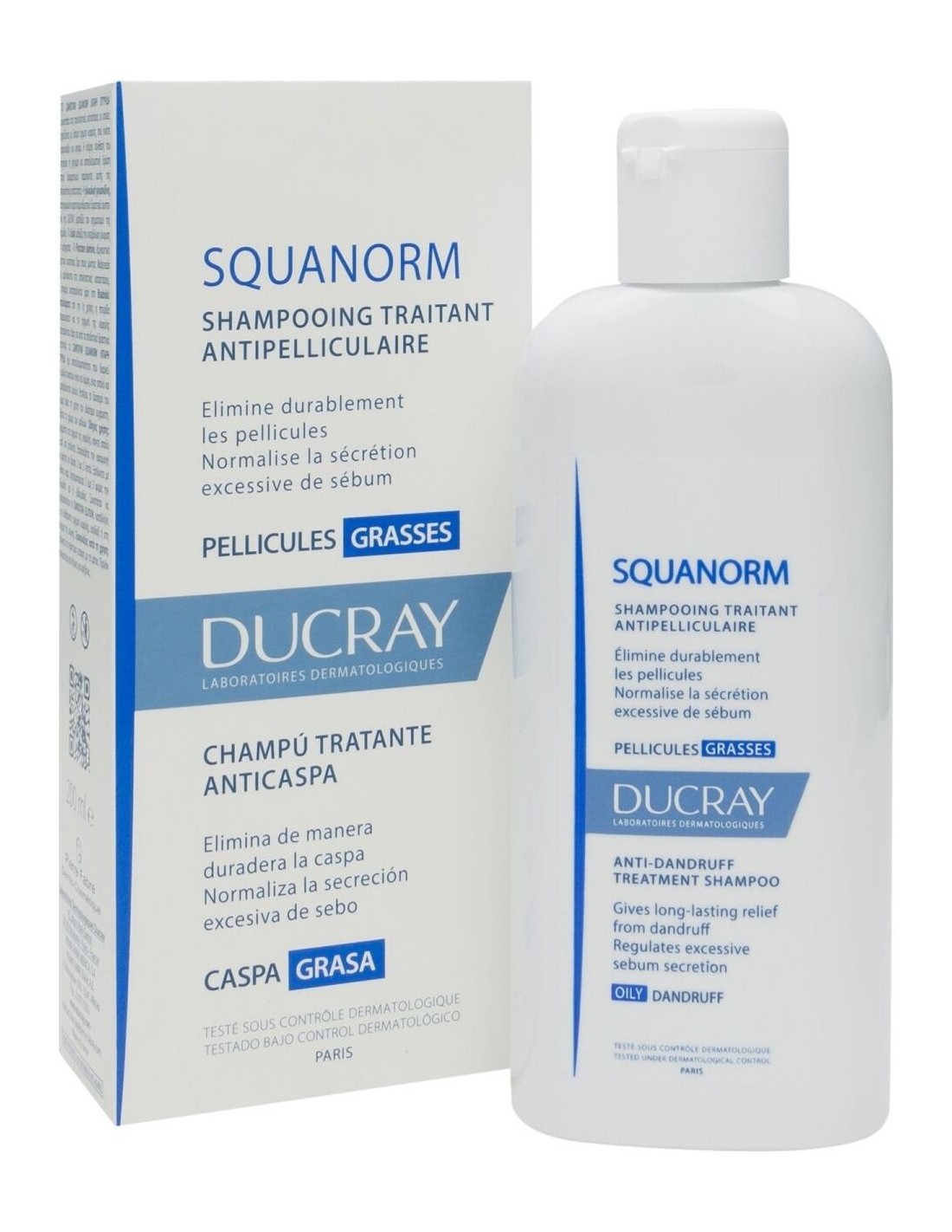 Ducray Squanorm champú caspa grasa 200ml es un champú queratorreductor que permite calmar los picores y las rojeces de forma rápida y duradera y que elimina las escamas adheridas, actuando directamente sobre los mecanismos responsables de la seborrea y retrasando el engrasado de los cabellos.