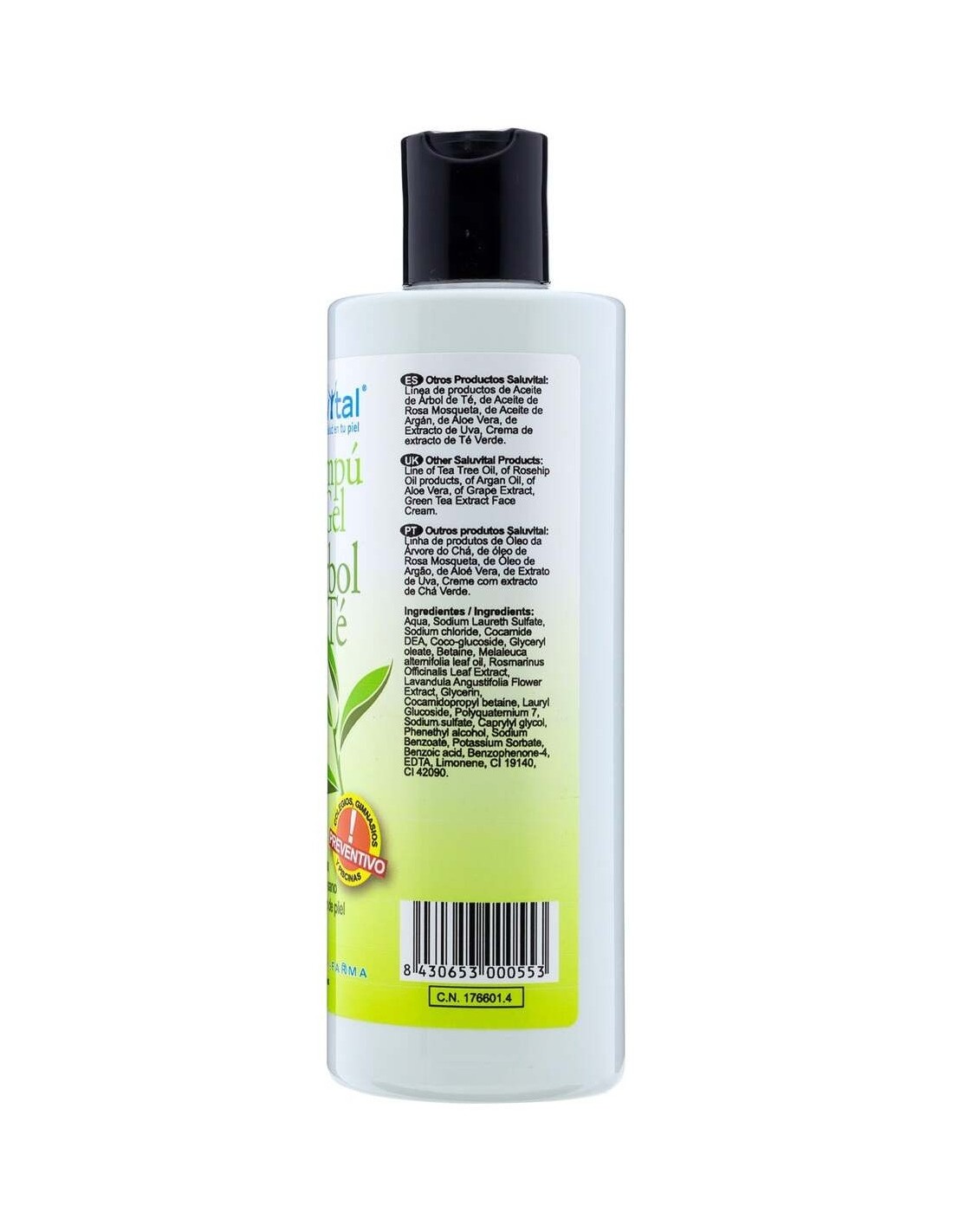 Saluvital champú & gel de árbol del té es un tratamiento para cabello y cuerpo rico en extractos 100% naturales y apto para todo tipo de pieles.